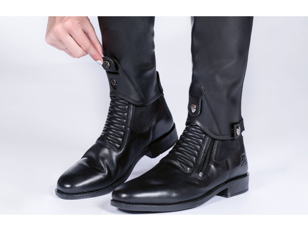 Wygodne sztylpy wykonane z wysokiej jakości skóry. Wyposażone w zapięcie na zamek błyskawiczny z tyłu, który jest zabezpieczony na dole zatrzaskiem. Wzdłuż zamka błyskawicznego znajduje się elastyczna część, która ułatwia zakładanie i zapewnia idealne dopasowanie. Idealnie pasują do sztybletów Killarney HKM, można je wygodnie do nich przymocować za pomocą zatrzasku. Dostępny również w kolorze brązowym. Dostępna w wielu rozmiarach.