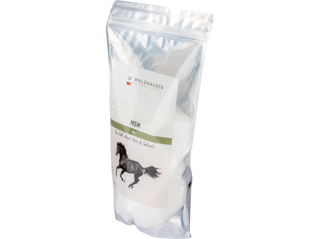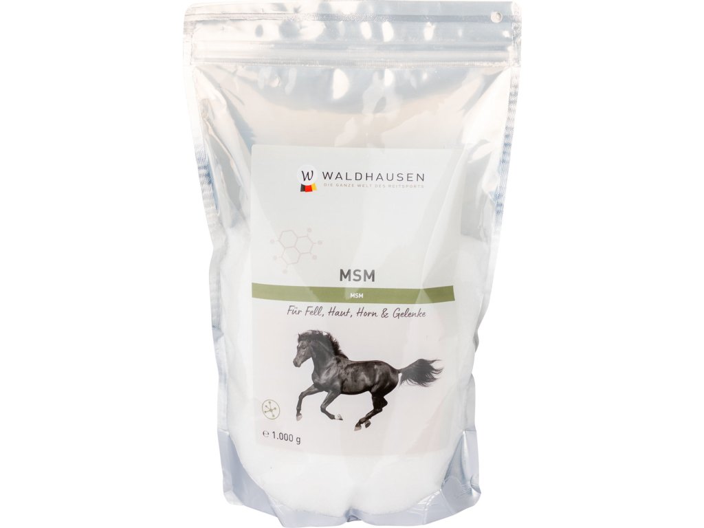 MSM to organiczny związek siarki, który ma pozytywny wpływ na cały organizm konia. Aminokwasy zawierające siarkę zwiększają odporność stawów, więzadeł i ścięgien. Wspierają również wzrost kopyt, zapewniają piękną sierść i łagodzą artretyzm.