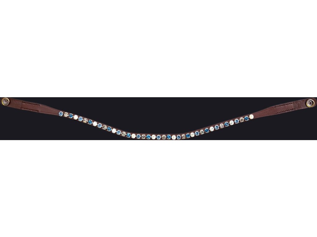 Wysokiej jakości skórzany naczółek do ogłowia FaySport PresTeq w kolorze brązowym z niebieskimi dżetami. Naczółek jest dostępny w kilku wariantach kolorystycznych. PresTeq wykorzystuje oryginalne kryształy Swarovskiego, które optymalnie odbijają światło i pięknie błyszczą. Dzięki systemowi mocowania PressTEQ wymiana naczółka jest bardzo łatwa. Nie musisz już rozbierać całego ogłowia, ale możesz łatwo odpiąć zatrzaski (ćwieki) i wymienić naczółek. W ciągu kilku sekund uzyskasz nowy wygląd.