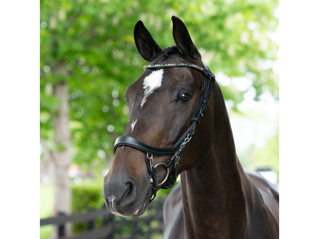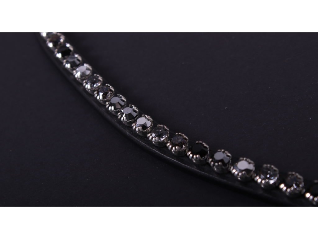 Wysokiej jakości skórzany naczółek do ogłowia FaySport PresTeq w kolorze czarnym z ciemnymi dżetami. Naczółek jest dostępny w kilku wariantach kolorystycznych. PresTeq wykorzystuje oryginalne kryształy Swarovskiego, które optymalnie odbijają światło i pięknie błyszczą. Dzięki systemowi mocowania PressTEQ wymiana naczółka jest bardzo łatwa. Nie musisz już rozbierać całego ogłowia, ale możesz łatwo odpiąć zatrzaski (ćwieki) i wymienić naczółek. W ciągu kilku sekund uzyskasz nowy wygląd.