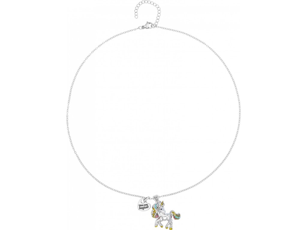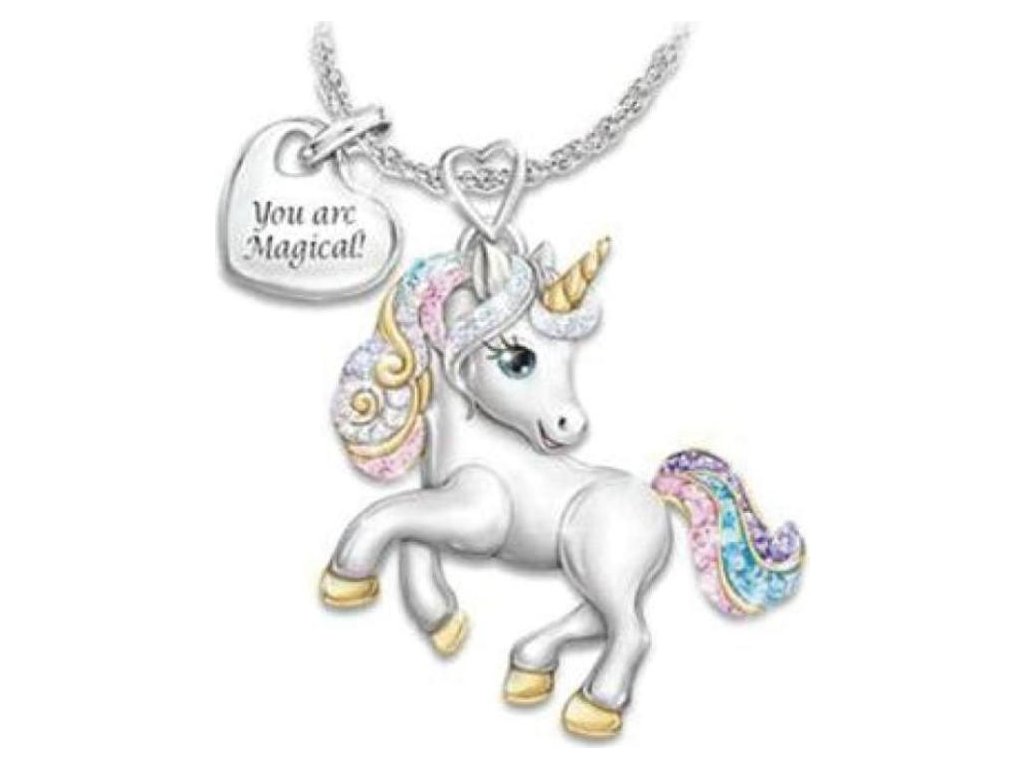 Uroczy naszyjnik z wisiorkiem jednorożca ozdobionym delikatnymi cyrkoniami. Jest to idealny dodatek dla małych i dużych fanek bajkowych motywów. Powierzchnia została pokryta galwanicznie stopem bez niklu, dzięki czemu jest łagodna dla skóry i nadaje się do codziennego noszenia.