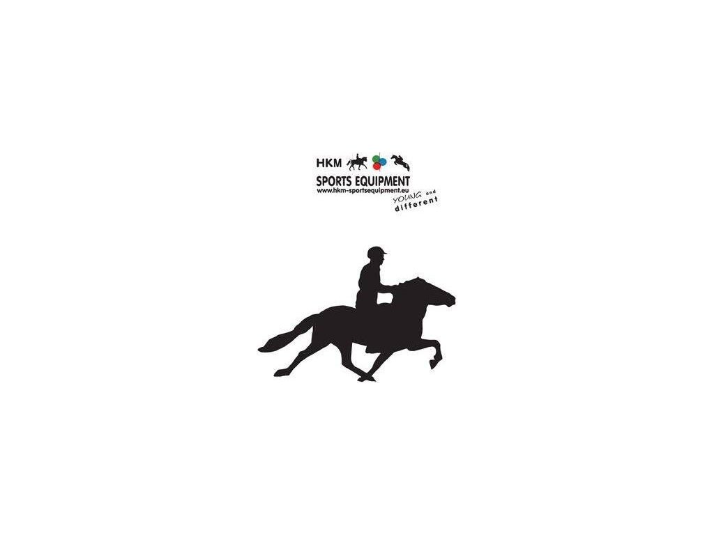 Naklejka samochodowa w kształcie konia z jeźdźcem. Wymiary: 10 cm x 10 cm.