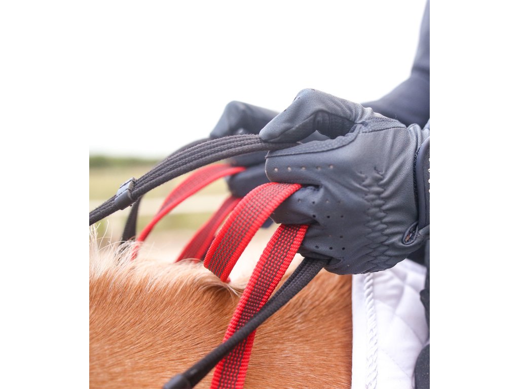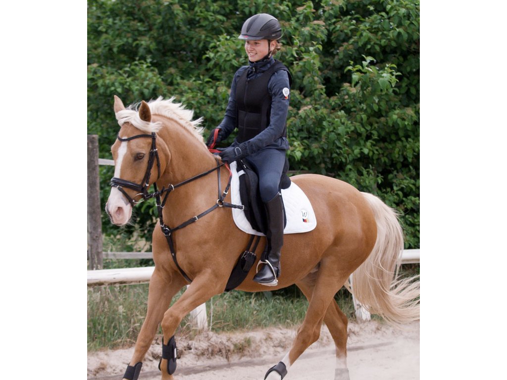 Bezpieczny napierśnik, który jest odpowiedni dla początkujących. Służy do ćwiczenia wzmacniającego kontrolę. To połączenie może być również stosowane dla młodych lub trudnych do kontrolowania koni, które mają tendencję do wykonywania nagłych ruchów. Bezpieczne wodze powstrzymują jeźdźca w razie potrzeby i pomagają przywrócić kontrolę nad koniem.