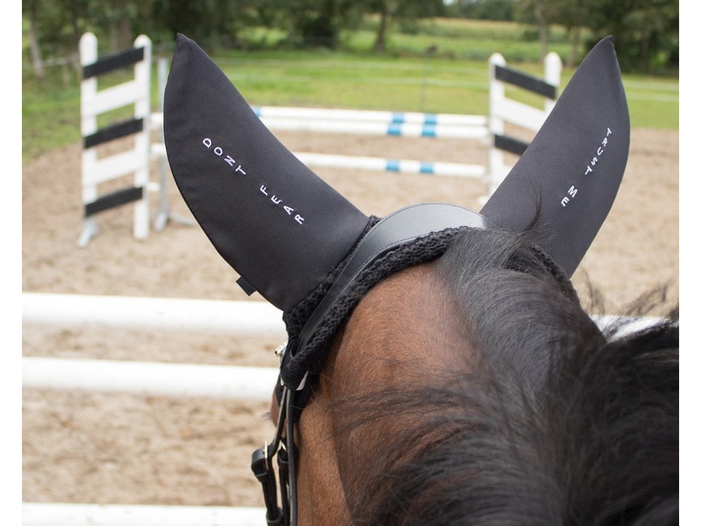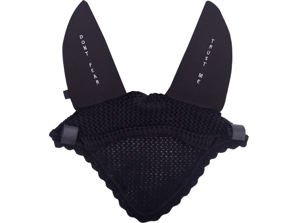 Wysokiej jakości nauszniki wykonane na szydełku ze stylowym napisem 'Don't fear, trust me' z tyłu uszu. Uszy są wykonane z materiału, który redukuje odbiór dźwięków otoczenia. Nauszniki można przymocować do ogłowia za pomocą dwóch zapięć na rzepy. Są ozdobione logo QHP. Więcej dostępnych opcji napisów: "Just get over it" lub "Keep calm and focus".