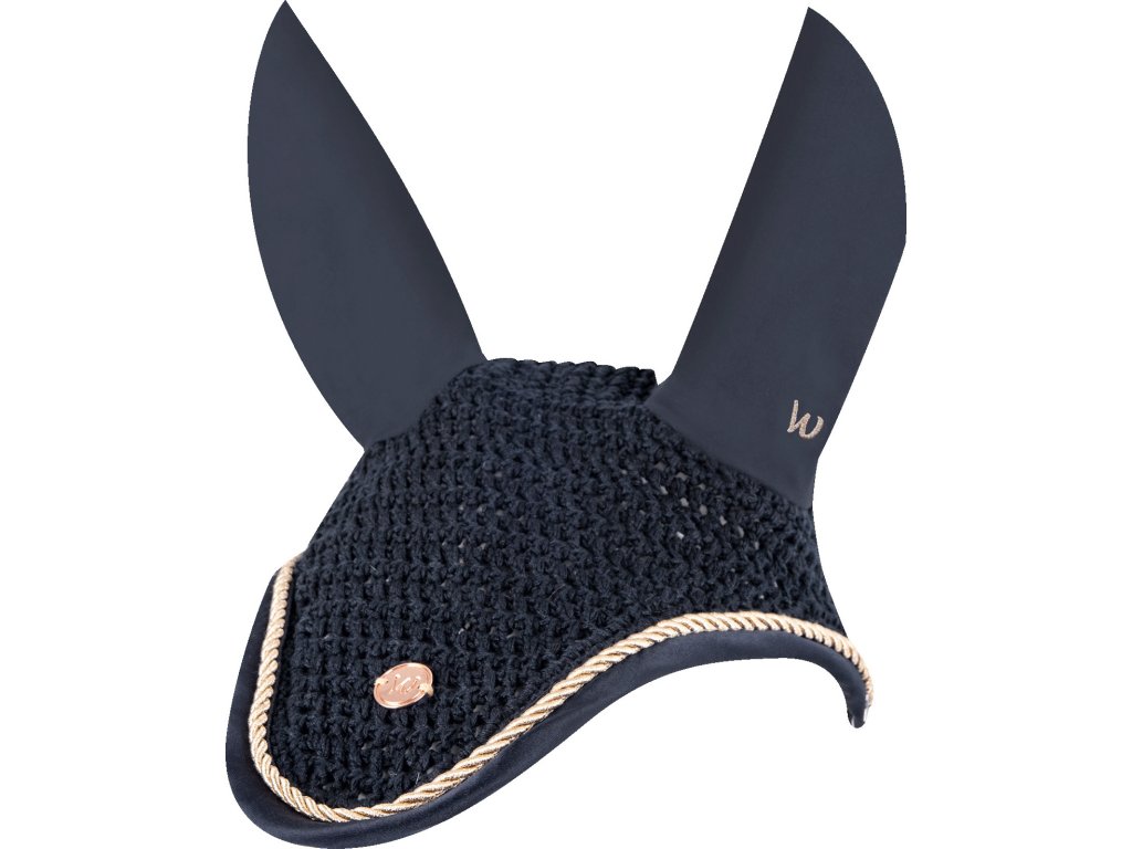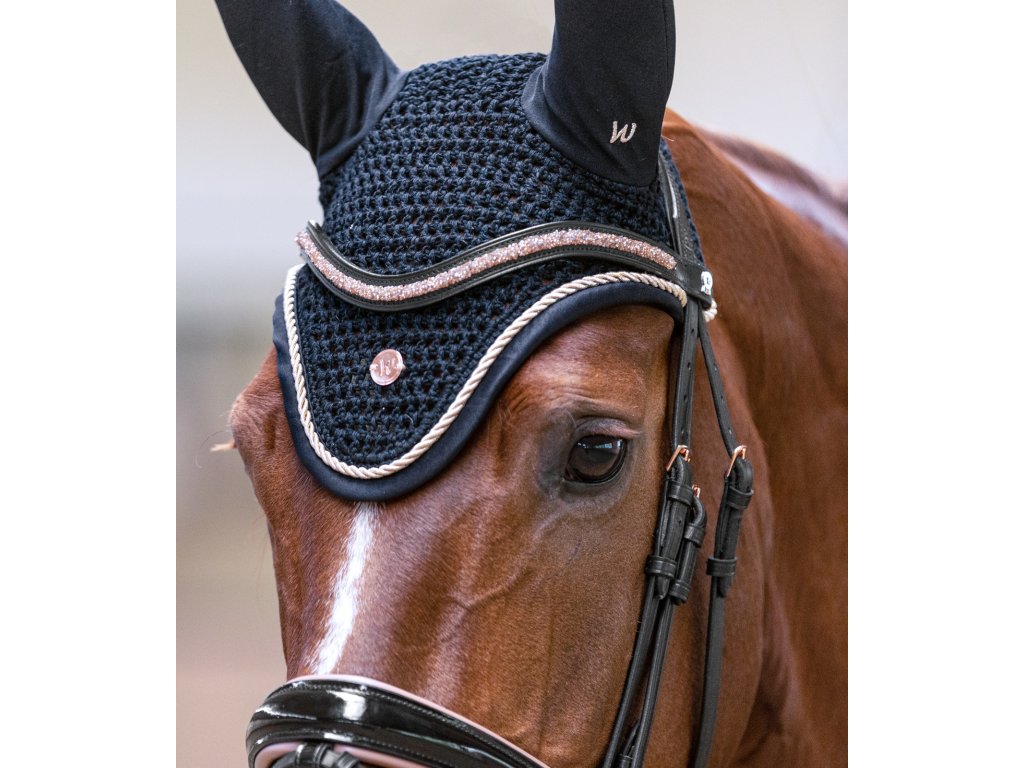 Wysokiej jakości nauszniki dla konia, idealnie pasujące do produktów z serii Modern Rosé. Ozdobione są sznurkiem w kolorze różowego złota, co nadaje im elegancki wygląd.