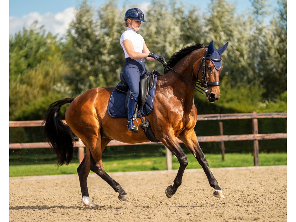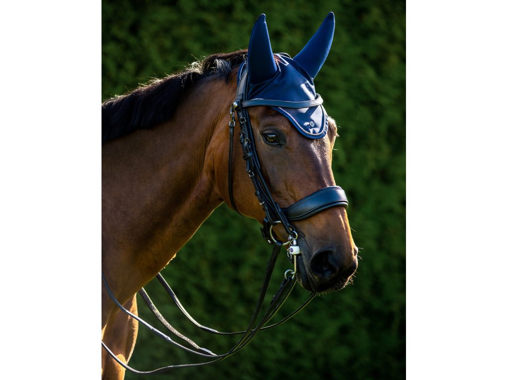 Wysokiej jakości nauszniki chroniące przed uciążliwymi owadami, a także redukujące hałas z otoczenia. To prowadzi do lepszej koncentracji konia i lepszych wyników. Wyposażone w siatkowy pasek z tyłu uszu, który doskonale odprowadza nadmiar ciepła. Ozdobione cienką srebrną lamówką, która nadaje im elegancki wygląd. Dostępna w kolorze niebieskim i czarnym.