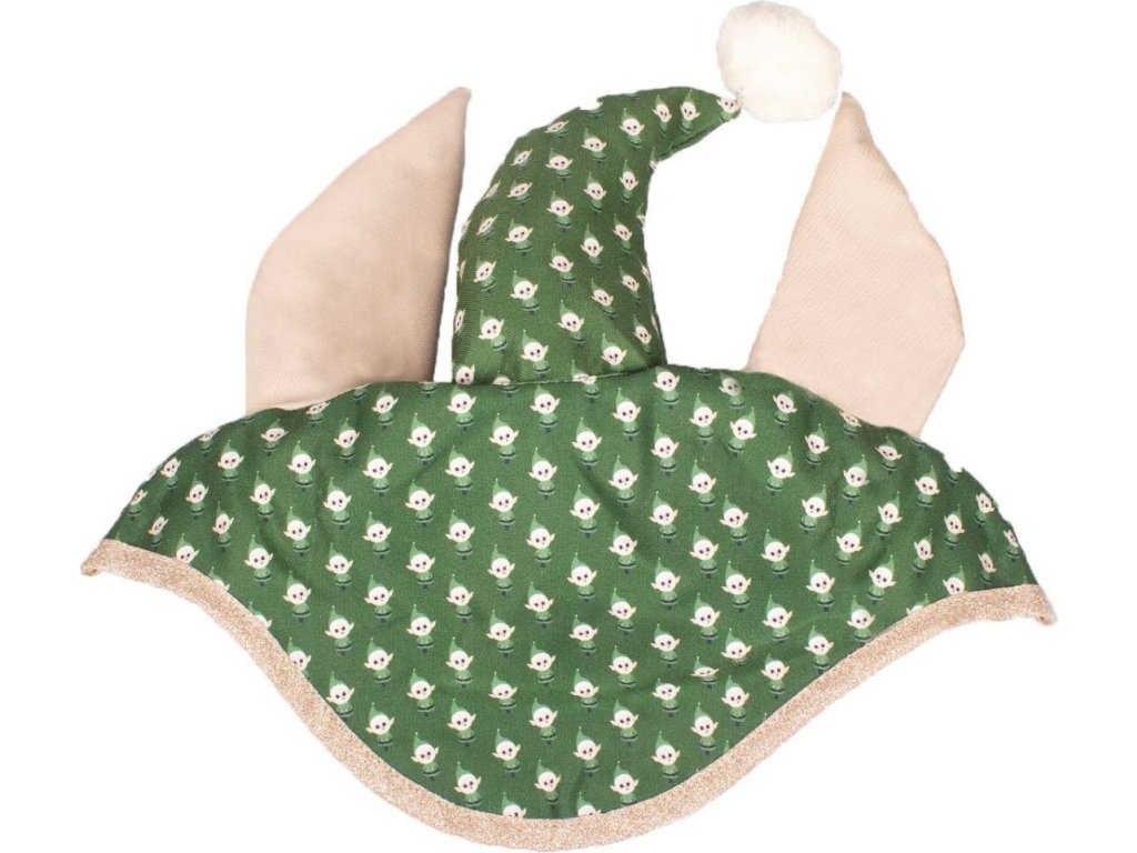 Nauszniki z uroczym świątecznym nadrukiem elfa i czapką pośrodku, wykończoną białym pomponem na końcu. Dostępne również z motywem renifera. Idealnie pasuje do innych produktów z kolekcji świątecznej.