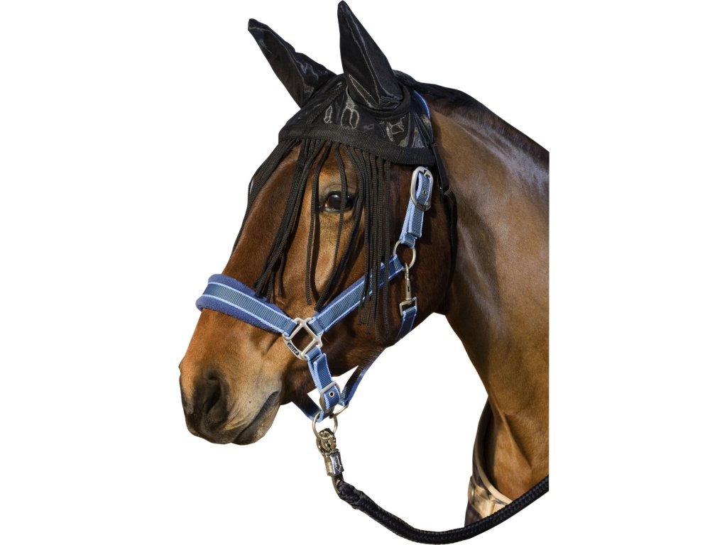 Frędzle przeciw owadom z elastyczną Lycra i siatkową ochroną uszu. Skutecznie chronią konie przed uciążliwymi owadami. Frędzle wykonane z nylonu. Nylonowe podgardle z możliwością regulacji
