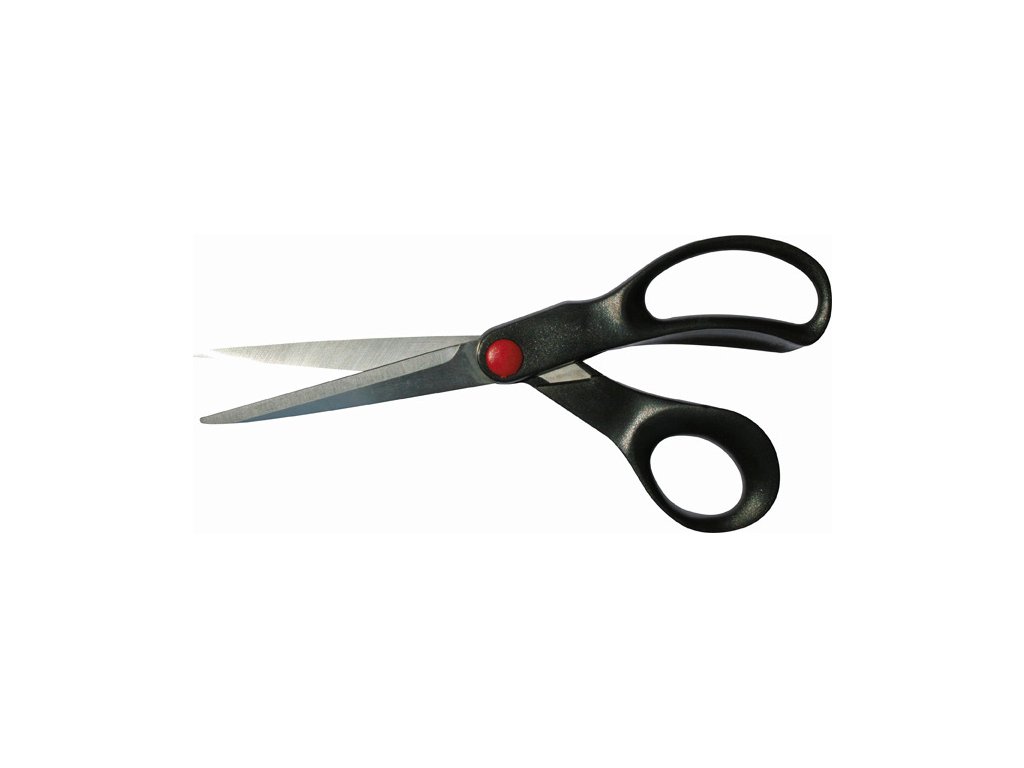 Nożyczki krawieckie z plastikową rączką. Nożyczki mają długość 21 cm.