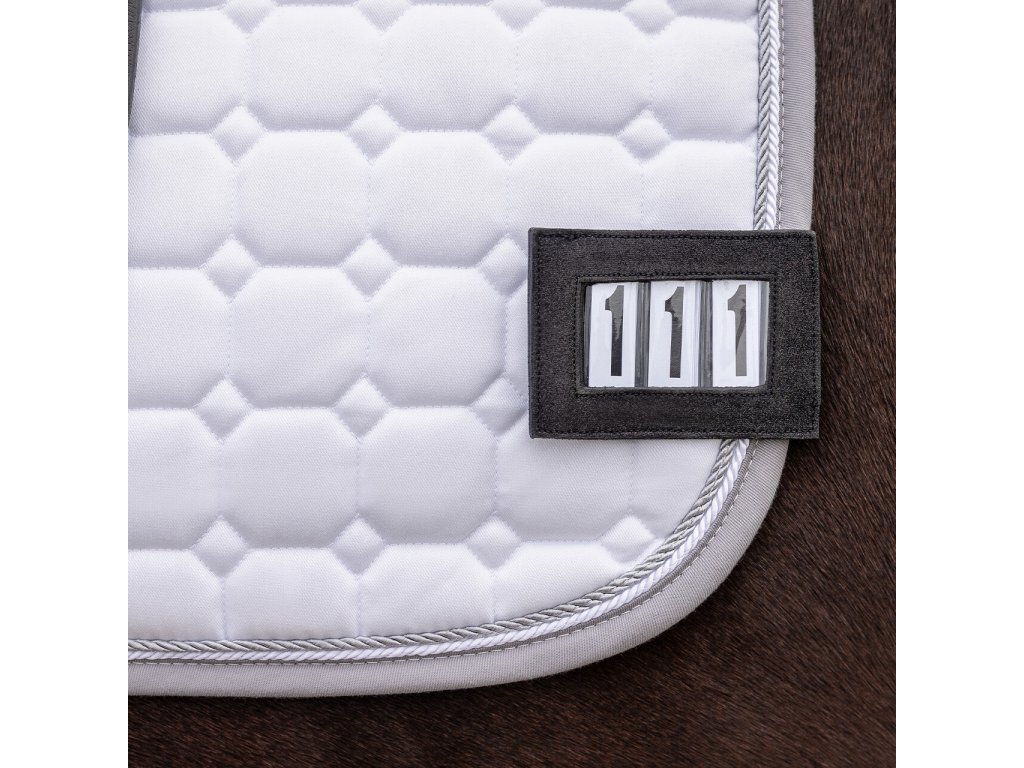 Trzycyfrowy numer startowy z subtelnym brokatem. Posiada praktyczny żelazny klips, który umożliwia łatwe przymocowanie go do lewej strony czapraka, zapobiegając powstawaniu dziur. Dostarczany razem z wymiennymi numerami.