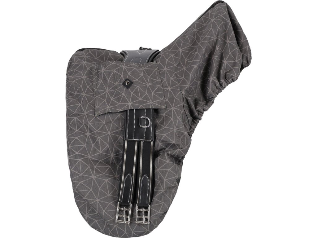Wysokiej jakości pokrowiec na siodło wykonany z wodoodpornego materiału, który chroni siodło przed deszczem i brudem. Posiada miękką polarową wyściółkę i otwory ułatwiające przeplecenie popręgu. Dzięki sznurkowi ściągającemu rozmiar można dopasować do prawie każdego siodła angielskiego. Wymiary: długość 80 cm, wysokość 75 cm.