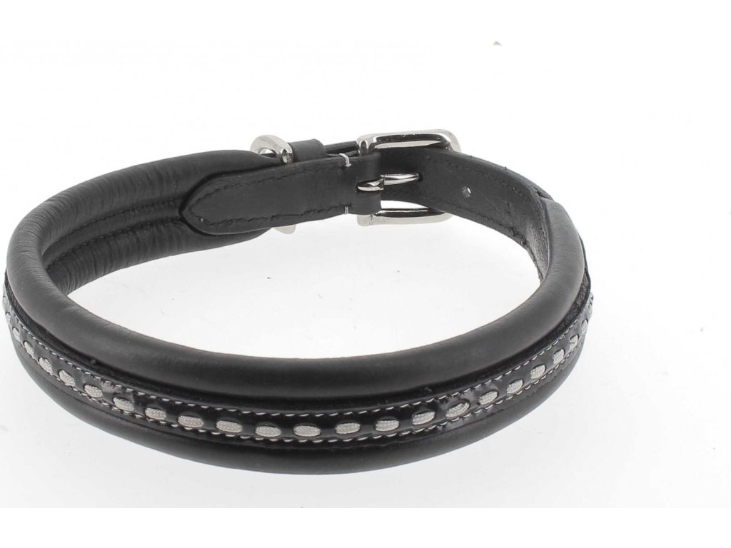 Obroża dla psa Point Sellier jest wykonana z wysokiej jakości skóry bydlęcej z miękkim podszyciem dla maksymalnego komfortu. Jest ozdobiona dekoracyjnymi przeszyciami we wzór Point Sellier, ma regulowany rozmiar i posiada kółko do mocowania smyczy. Logo producenta jest wytłoczone na końcu regulowanej części.