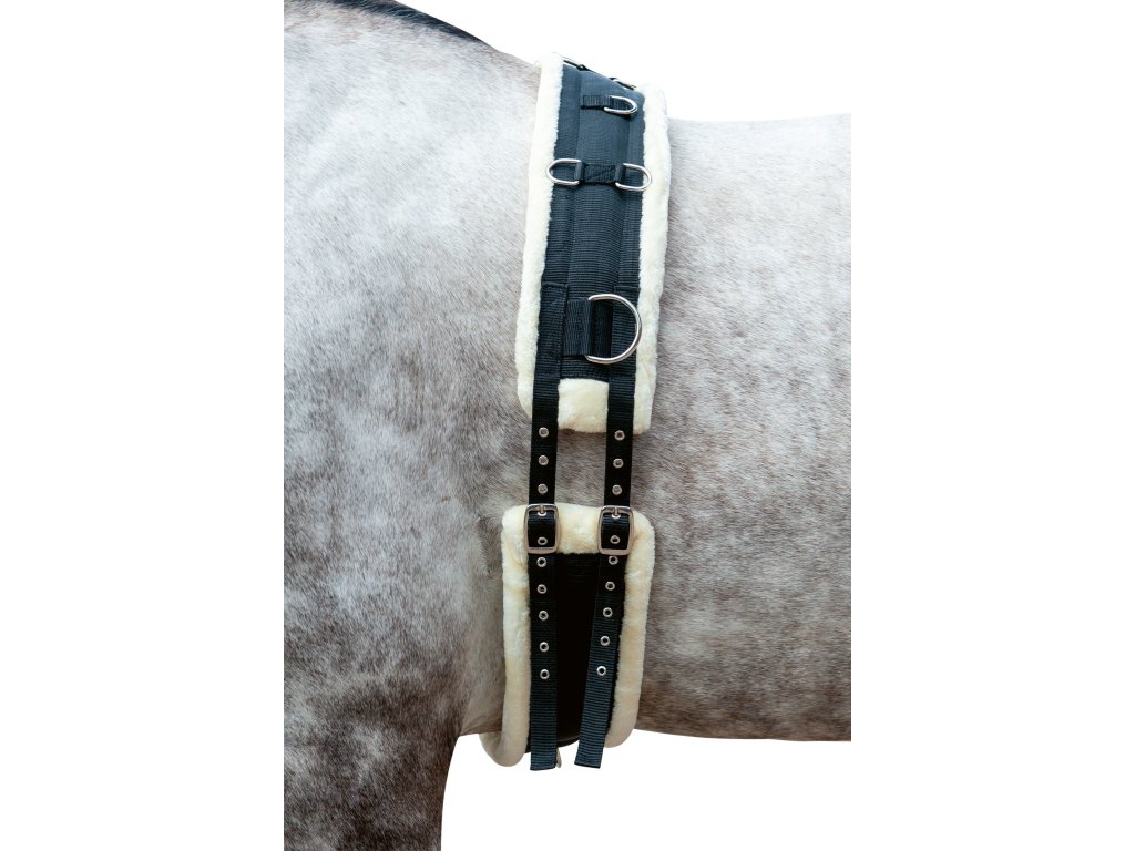Pas do lonżowania z miękką, syntetyczną skórą owczą na całym obwodzie. Pas do lonżowania jest wyposażony w kilka kółek do mocowania pomocy treningowych i łatwo regulowany po obu stronach. Wysokiej jakości okucia w kolorze srebrnym. Dostępne w różnych rozmiarach.