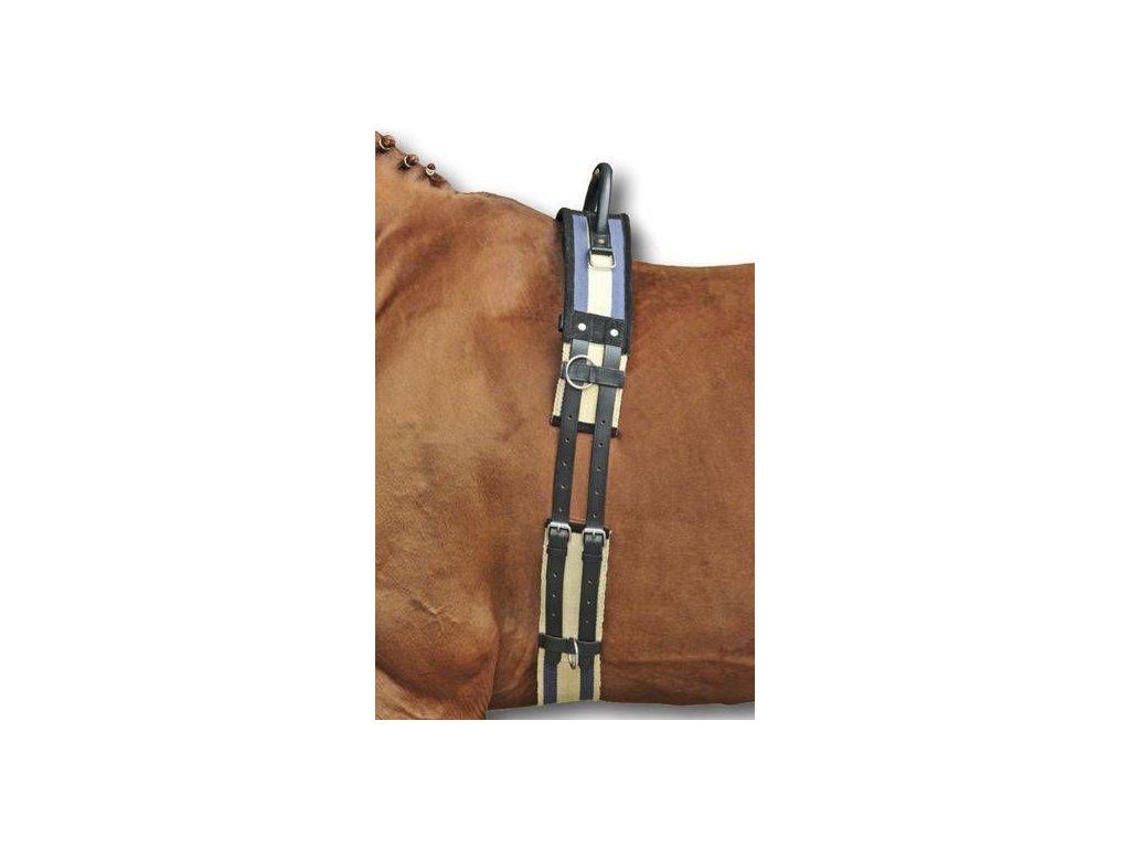 Pas do lonżowania z płótna z jednym skórzanym uchwytem. Wyposażony jest w kilka kółek do mocowania pomocy treningowych, dwa kwadratowe uchwyty po bokach służą do mocowania puślisk i strzemion (nie nadaje się do wsiadania). Dostępne różne opcje kolorystyczne i rozmiary.