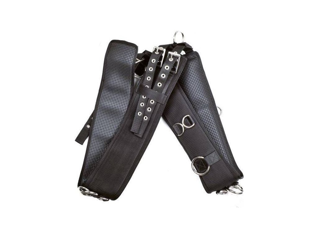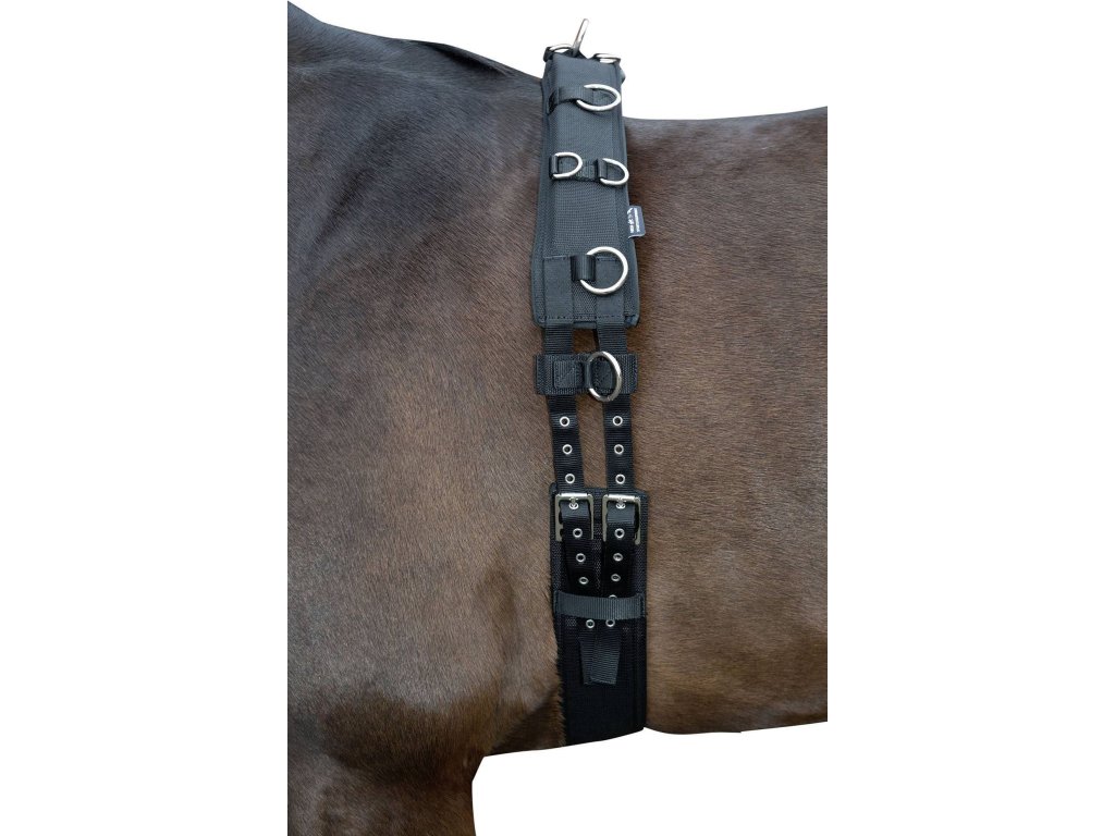 Pas do lonżowania podszyty miękkim neoprenem. Regulowany po obu stronach za pomocą rolek. Wyposażony w kilka kółek do mocowania pomocy treningowych. Wysokiej jakości okucia ze stali nierdzewnej. Dostępny w rozmiarach PONY i COB/FULL.