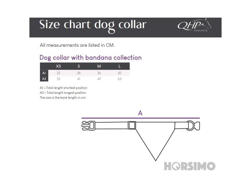 Urocza obroża z bandaną dla Twojego czworonożnego przyjaciela. Obroża jest regulowana za pomocą przesuwanej klamry. Bandana jest ozdobiona logo QHP. Z wysokiej jakości czarnymi elementami.