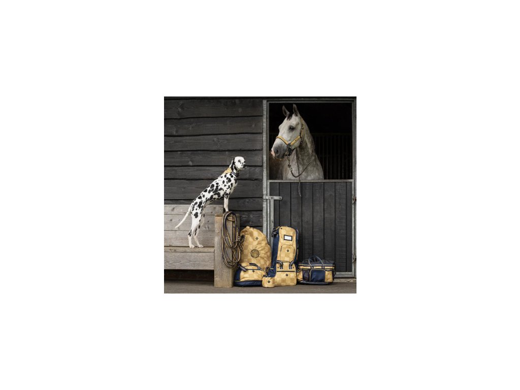 Urocza obroża z bandaną dla Twojego czworonożnego przyjaciela. Obroża jest regulowana za pomocą przesuwanej klamry. Bandana jest ozdobiona logo QHP. Z wysokiej jakości czarnymi elementami.