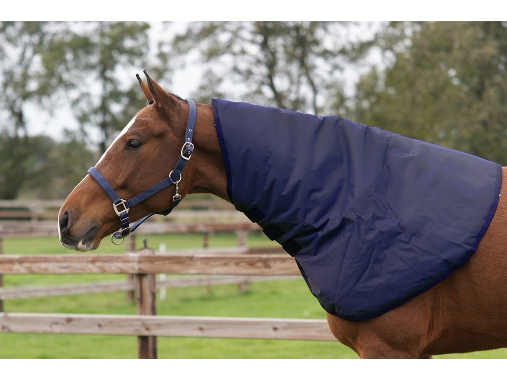 Wysokiej jakości wodoodporny ochraniacz na szyję do derki z 200g wypełnieniem. Wykonany z oddychającego i wysoce wytrzymałego materiału poliestrowego, wytrzymałość 600D. Zapewnia ochronę przed zamoczeniem dzięki wodoodporności 3000 mm/m2. Mocowanie za pomocą D-ringów z przodu derki. Kompatybilny z derkami QHP.