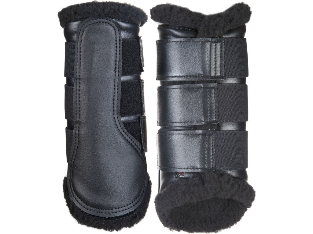 Wysokiej jakości ochraniacze wyściełane miękką imitacją owczej skóry. Wewnętrzna wyściółka wykonana z miękkiego materiału softoprenowego. Zewnętrzny, wytrzymały materiał doskonale imituje skórę naturalną. Ochraniacze mogą być używane na przednich i tylnych nogach lub jako ochraniacze ujeżdżeniowe. Można prać w pralce w temperaturze 30°C, zaleca się zapięcie rzepów przed praniem. Można suszyć w suszarce bębnowej. Dostarczane w parach.