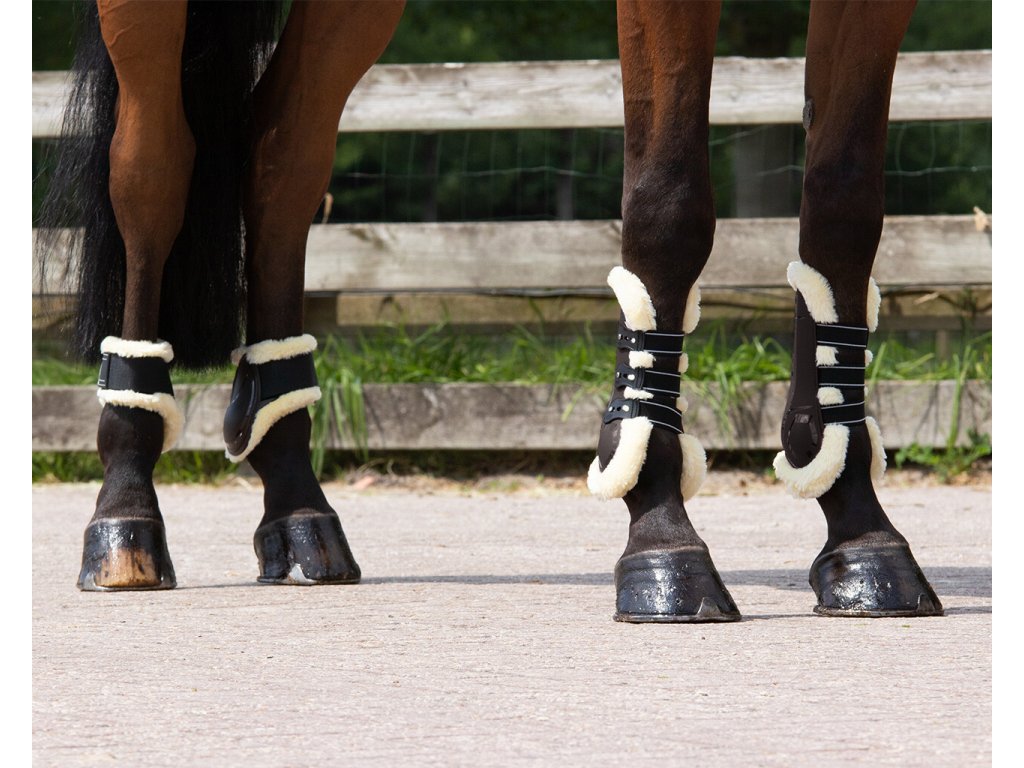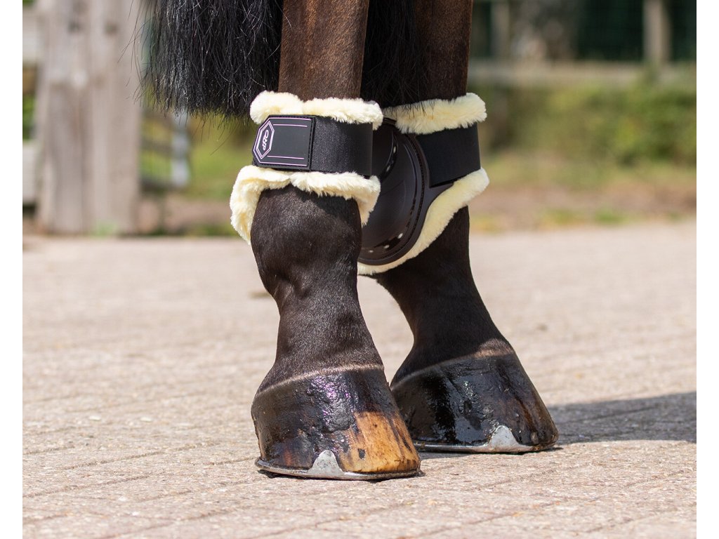Bardzo wysokiej jakości ochraniacze na pęciny na tylne nogi z sztucznym futrem. Ochraniacze na pęciny chronią nogi konia przed uderzeniami i urazami. Są wyposażone w małe otwory w skorupie, które zapewniają maksymalną oddychalność i odprowadzają wilgoć. Są wyposażone w zapięcia na rzepy. Dostępne również w kolorze czarnym.