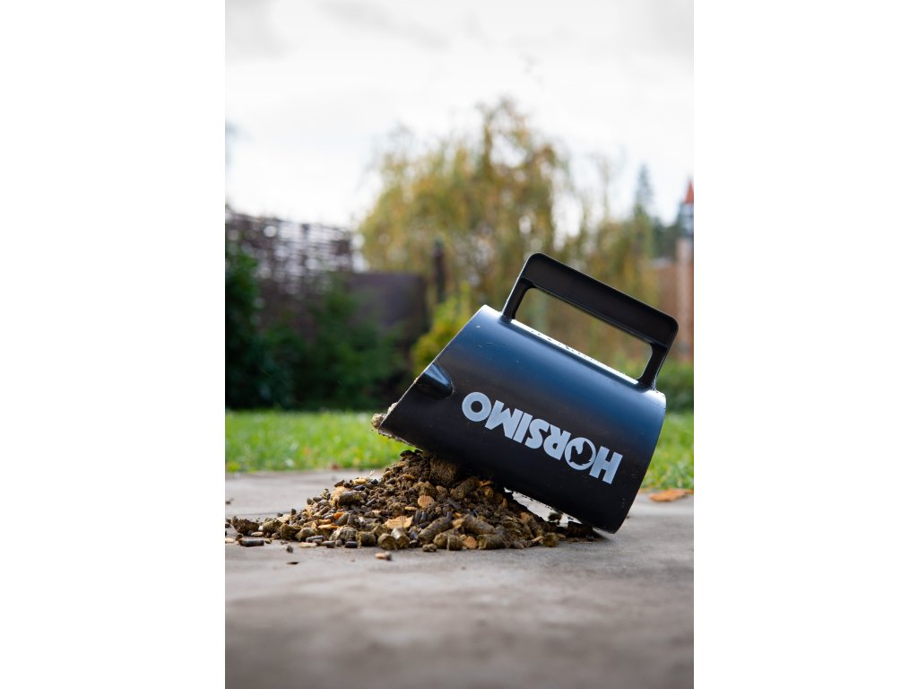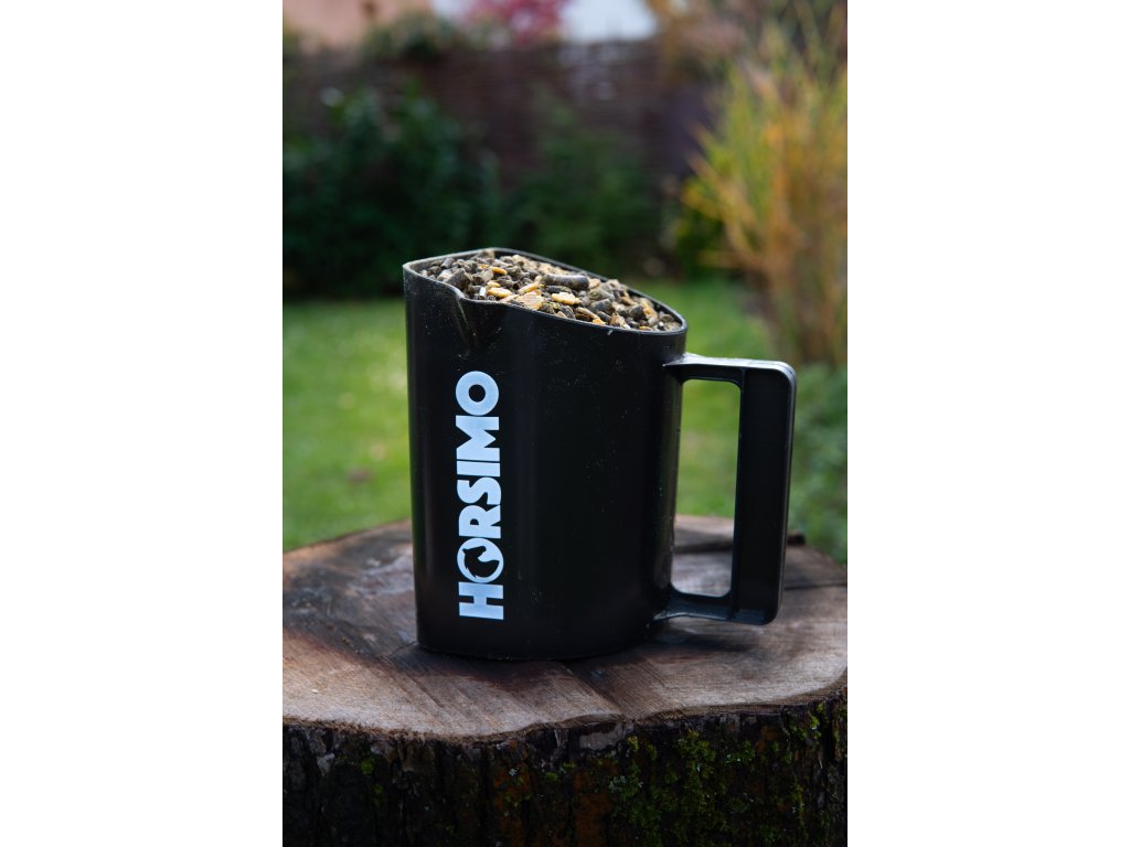 Praktyczny, plastikowy i bardzo wytrzymały kubek miarowy do paszy. Nadrukowana skala umożliwia szybki pomiar ilości. Może być używany do płynów. Pojemność 2 L. Wymiary: 17 cm x 17,5 cm x 18,5 cm.