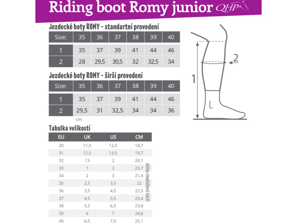Rozmiary są dostępne od 33–41 i są szczególnie odpowiednie dla młodych jeźdźców. Mogą być również odpowiednie dla drobnych, dorosłych kobiet.