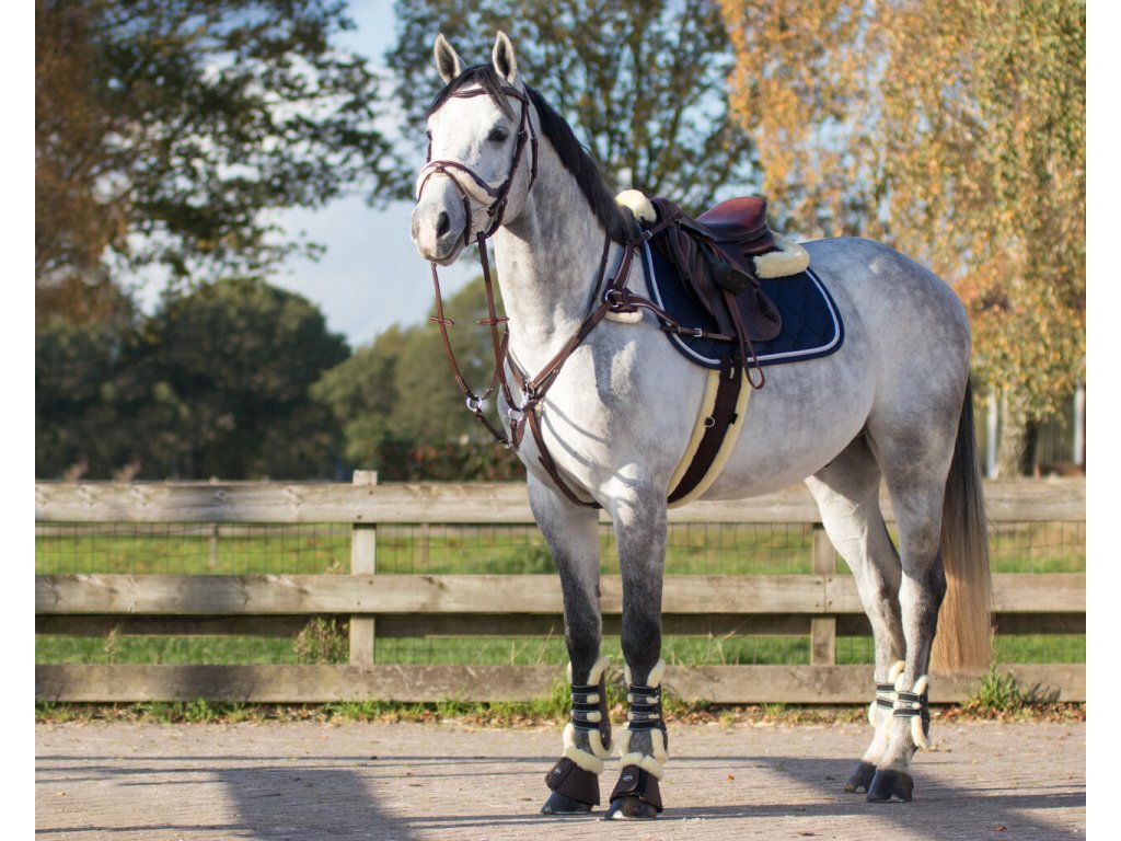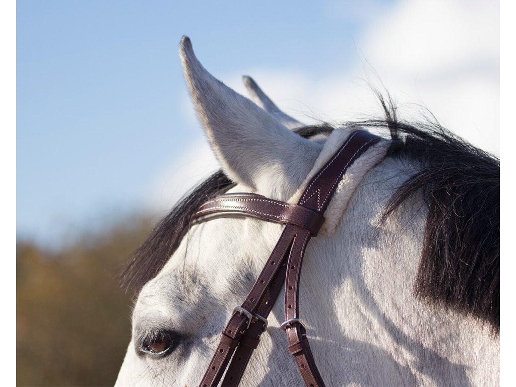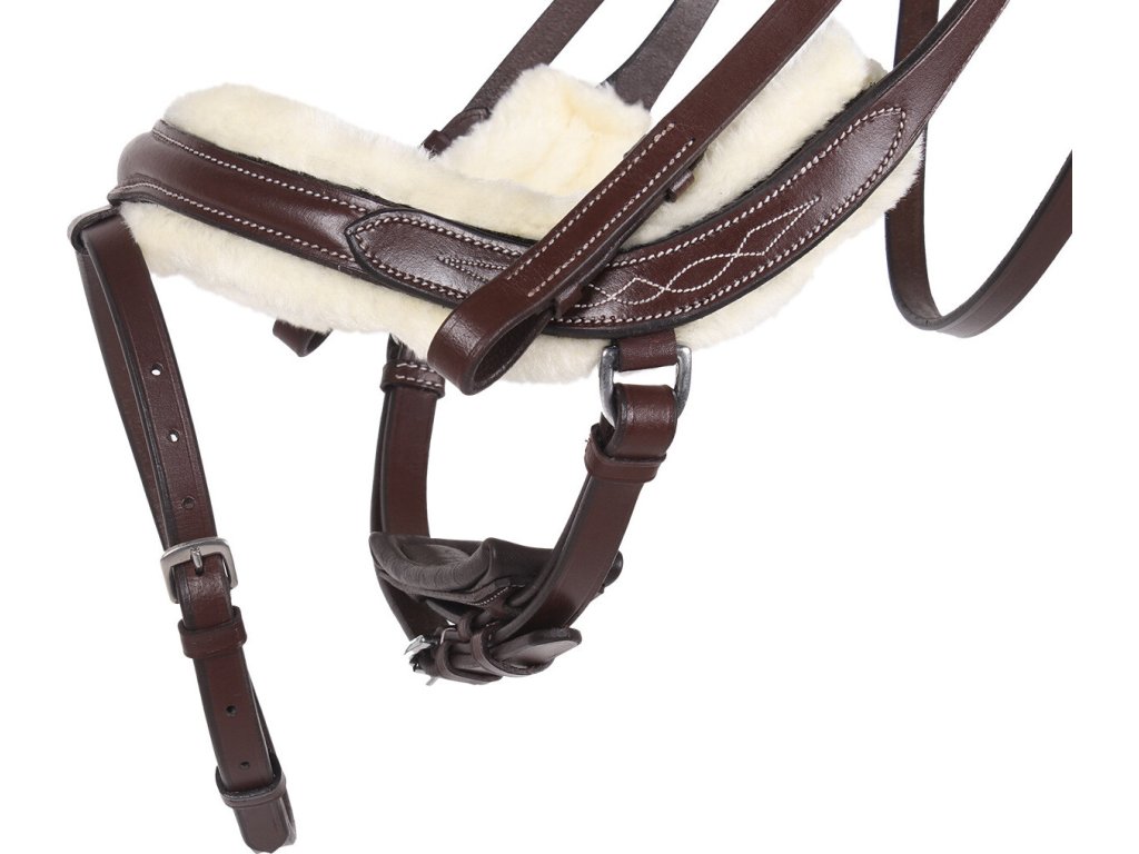 Anatomicznie ukształtowane ogłowie z miękką wyściółką pod nachrapnikiem i paskiem potylicznym. Wyściółka wykonana jest z sztucznego futra, jest odpinana i można ją prać w pralce. Wyściółka zapobiega podrażnieniom i dlatego jest idealna dla koni o wrażliwej skórze. Białe ozdobne szwy nadają ogłowiu luksusowy wygląd. Dostarczane z wodzami. Pasuje do innych produktów z kolekcji Ontario.