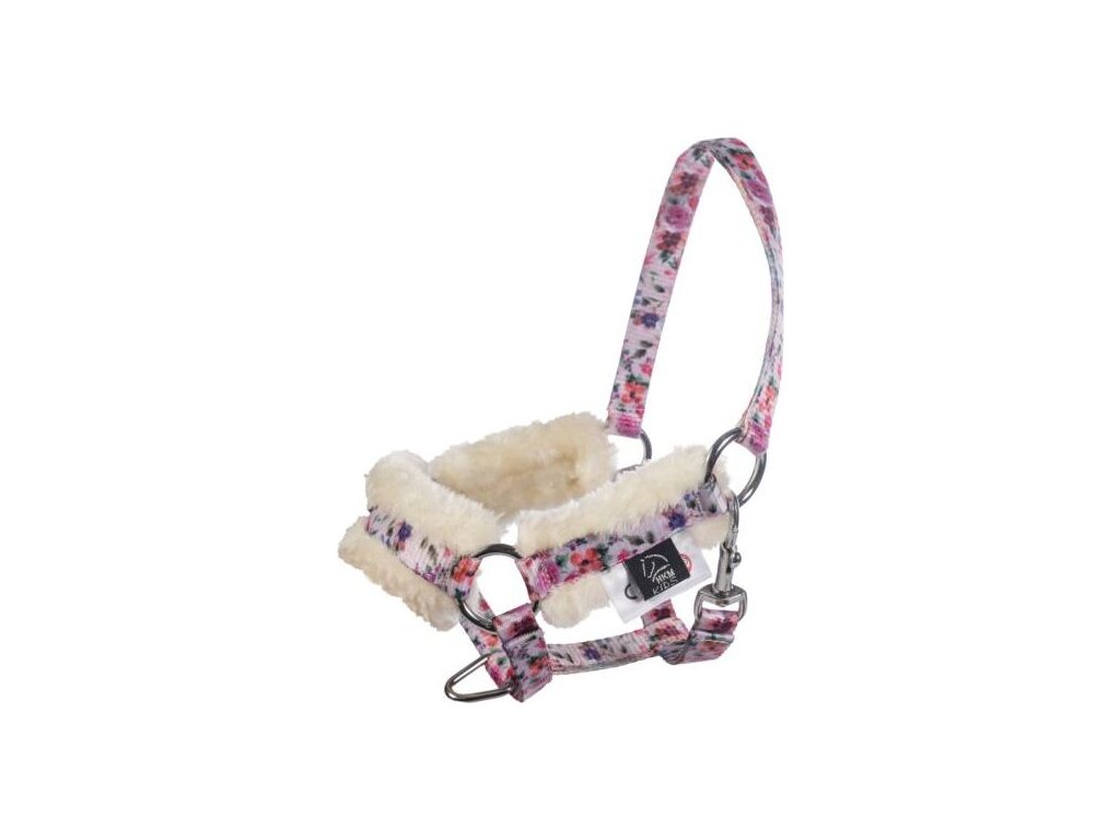 Kantar z uwiązem dla Hobby horse. Kantar uzupełniony jest o owczą skórę w obszarze nachrapnika i pasków policzkowych, co pięknie dopełnia głowę Twojego Hobby horse. Kantar jest ozdobiony kwiatowym nadrukiem, a uwiąz pięknie do niego pasuje kolorystycznie. To akcesorium można znaleźć w naszej ofercie w kilku opcjach kolorystycznych. Dostarczany w jednym uniwersalnym rozmiarze.