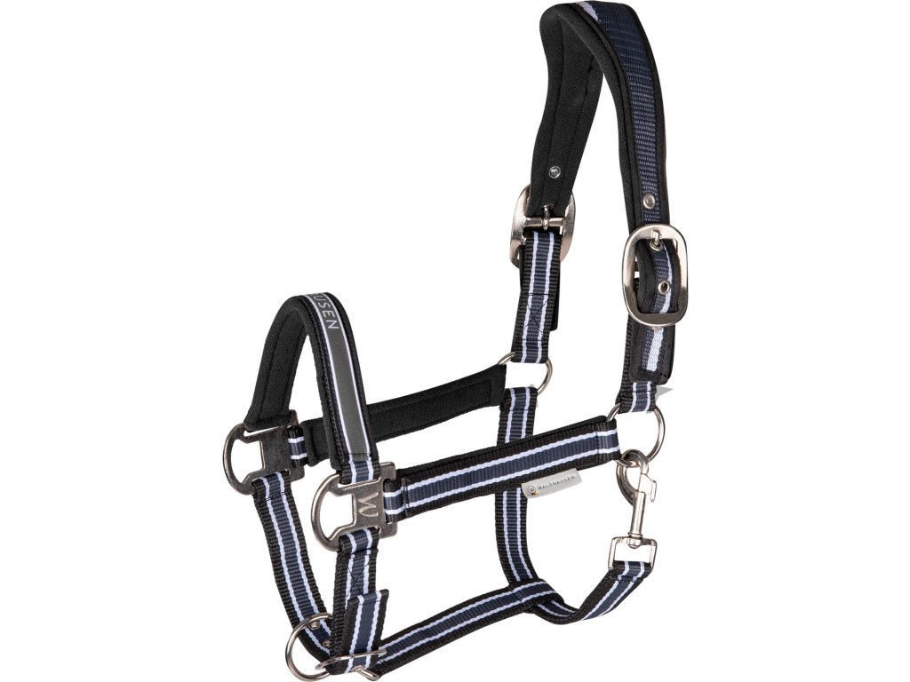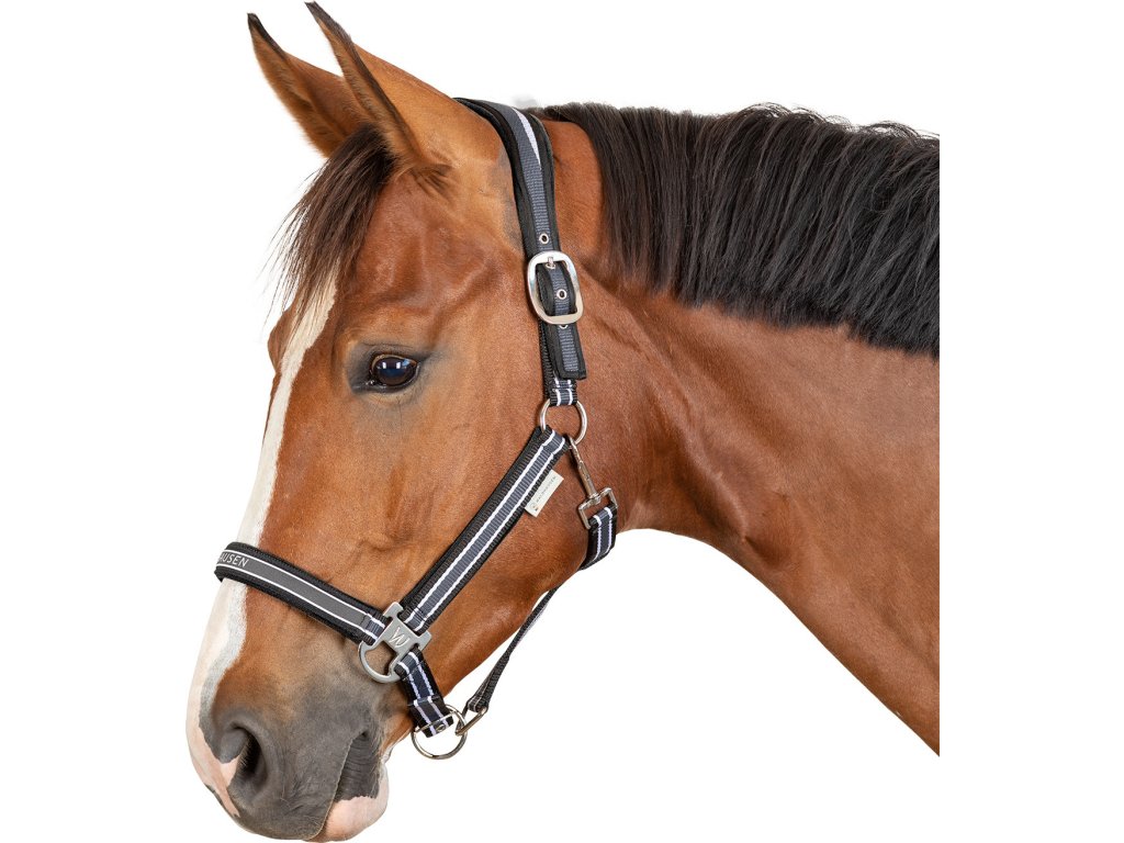 Wysokiej jakości kantar z miękkim wypełnieniem w okolicach paska potylicznego, nachrapnika i pasków policzkowych. Kantar jest bardzo wygodny dzięki anatomicznemu kształtowi. Rozmiar można regulować w zależności od potrzeb. Wyposażony jest w wysokiej jakości srebrne okucia.