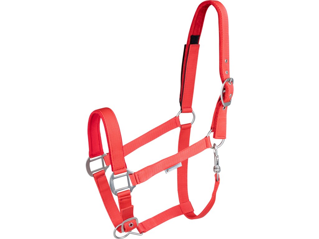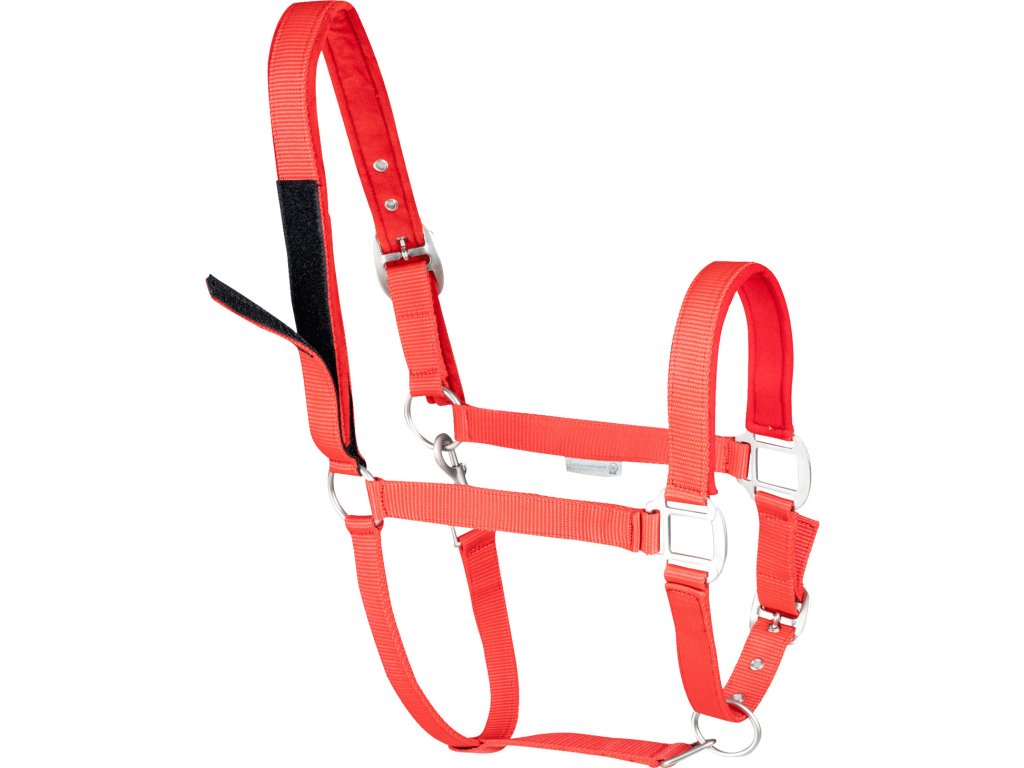 Wysokiej jakości kantar bezpieczeństwa dzięki zintegrowanemu zapięciu na rzep, które można bardzo szybko odpiąć w nagłym przypadku. Ponadto nie musisz się martwić, że koń gdzieś się zaplącze, idealny do użytku w stajni lub na padoku. Posiada miękkie podszycie w części potylicznej i nachrapnikowej z możliwością regulacji.