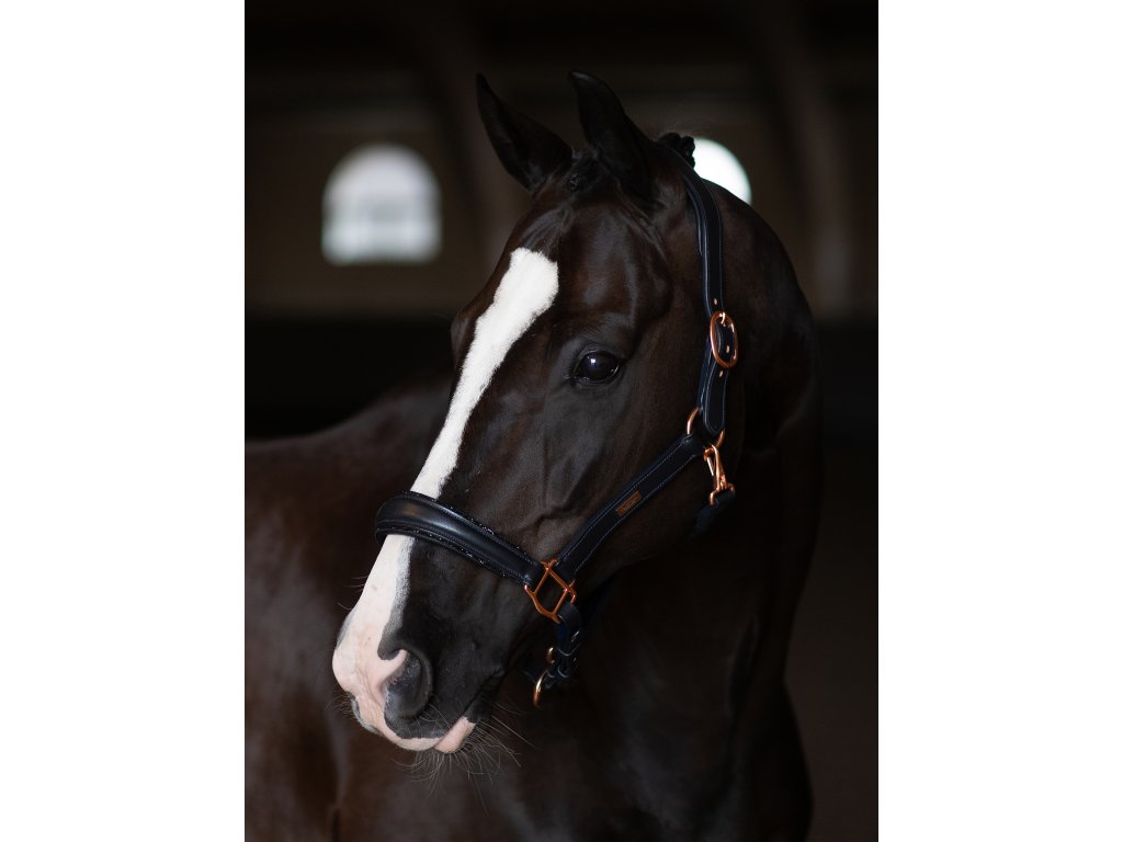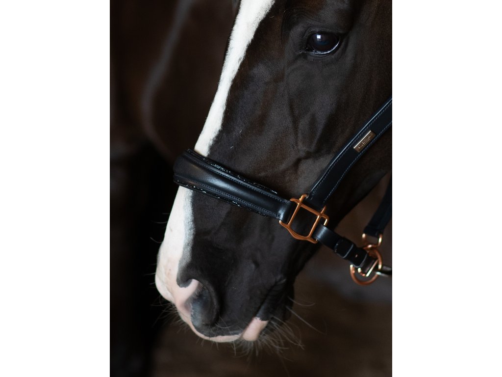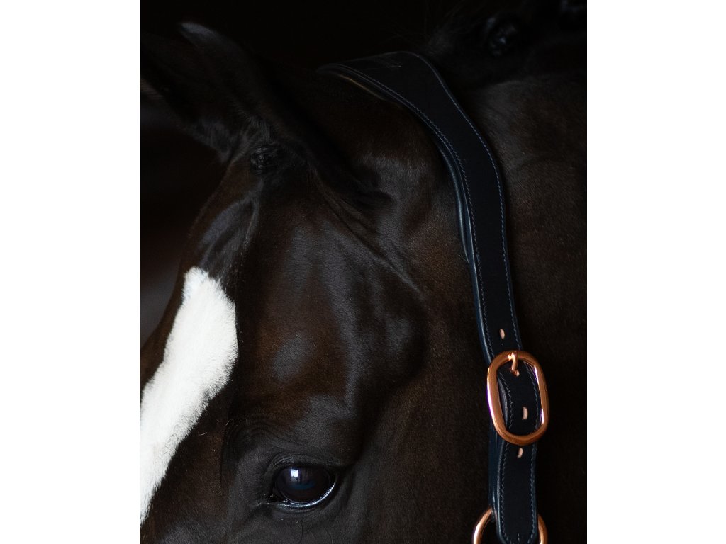 Anatomiczny skórzany kantar został opracowany z szerszym, wyściełanym paskiem potylicznym.Rozkłada równomiernie nacisk i zapobiega naciskowi na wrażliwe obszary potylicy. Anatomicznie zaprojektowany kształt kantara zapewnia komfort Twojemu koniowi i jest idealny na zawody i transport. Rozmiar można łatwo i szybko regulować po prawej i lewej stronie głowy konia. Ten luksusowy kantar konkursowy został zaprojektowany w eleganckim, ciemnoniebieskim kolorze oceanu i ozdobiony pięknymi czarnymi kryształkami na całym nachrapniku, dzięki czemu Twój koń wygląda fantastycznie i wyróżnia się na zawodach. Logo marki Equestrian Stockholm jest wygrawerowane na górze paska potylicznego, a po obu stronach policzka znajduje się plakietka ES w kolorze różowego złota, która dodaje stylu. Wykonany ze 100% wysokiej jakości skóry bawolej. Używamy zrównoważonego procesu barwienia owocami i warzywami, który nie wykorzystuje żadnych chemikaliów. Idealnie pasuje do innych produktów z kolekcji Dark Ocean.