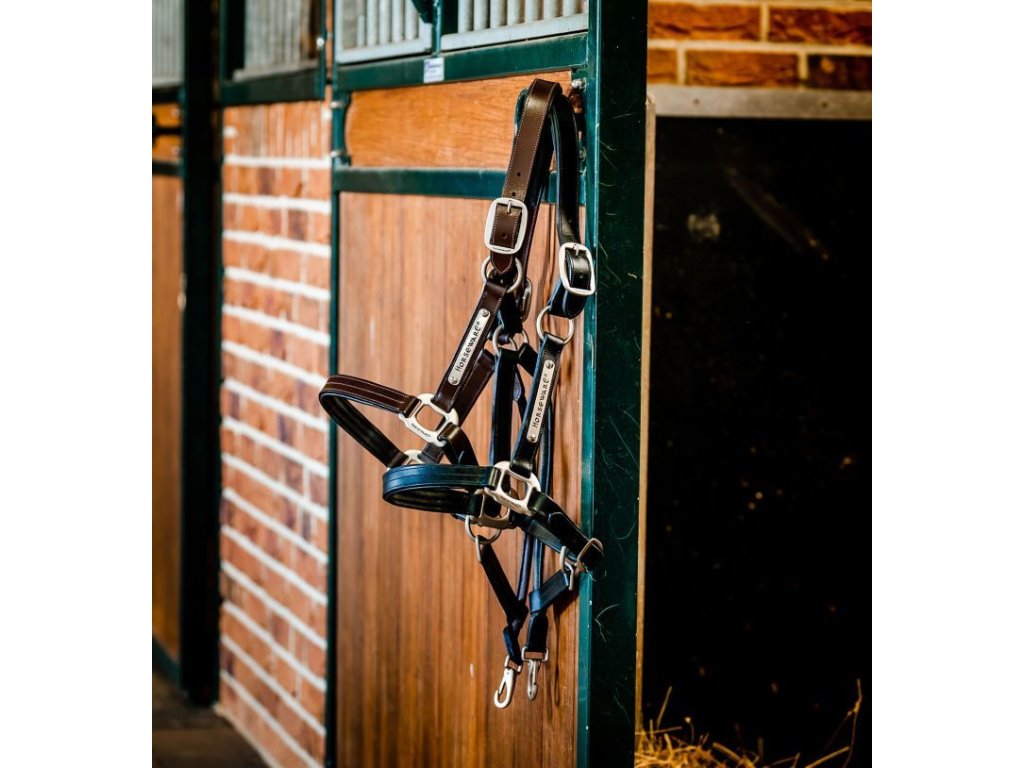 Skórzany kantar z kolekcji Signature od Horseware! Wykonany z bardzo wytrzymałej i ekologicznie garbowanej skóry. Miękka skórzana wyściółka w okolicy paska potylicznego zapewnia komfort i chroni przed otarciami. Regulowany rozmiar za pomocą sprzączek po obu stronach. Ozdobiona logo Horseware.