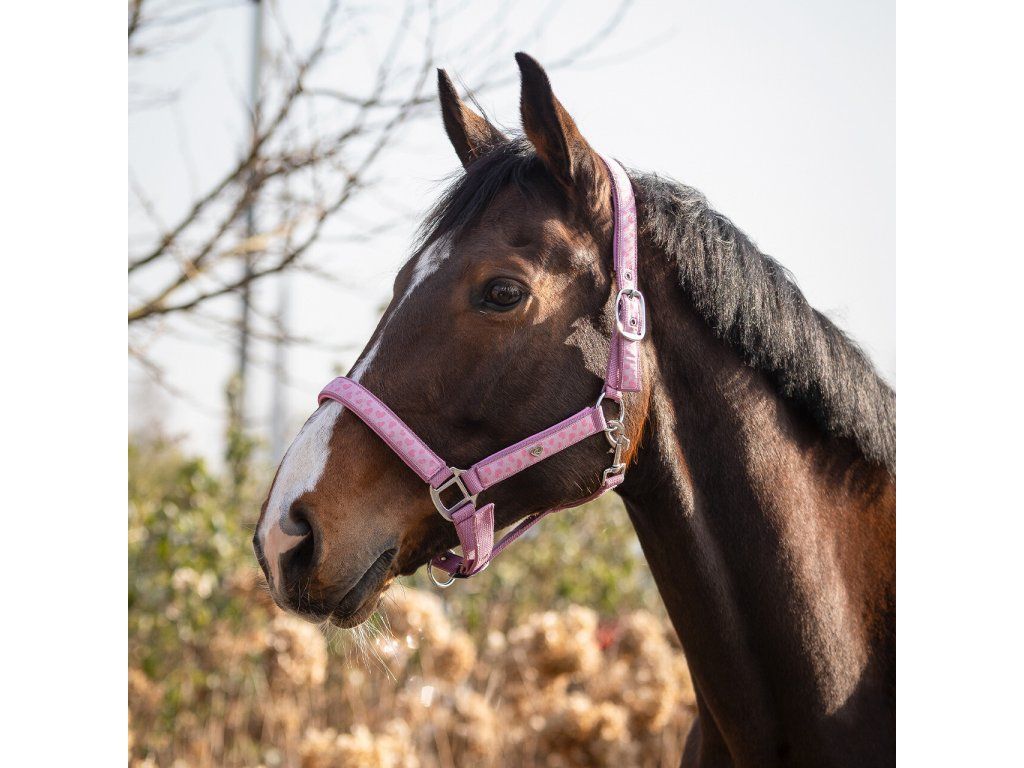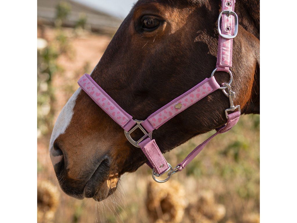 Uroczy kantar z motywem serduszek, który przyciąga wzrok od pierwszego wejrzenia. Regulowany pasek potyliczny i nachrapnik umożliwiają łatwą regulację rozmiaru. Pasek potyliczny, paski policzkowe i nachrapnik są miękko wyściełane. Kantar wyposażony jest w klasyczne zapięcie na karabińczyk.