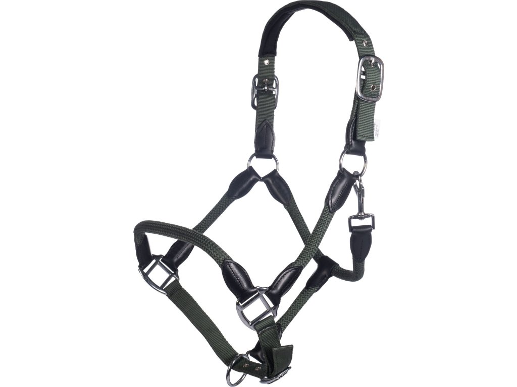Wysokiej jakości kantar wykonany z połączenia nylonu i skóry. Pasek potyliczny jest miękko wyściełany dla zapewnienia maksymalnego komfortu. Można go regulować na nachrapniku i po obu stronach paska potylicznego. Dostępne w wielu kolorach.
