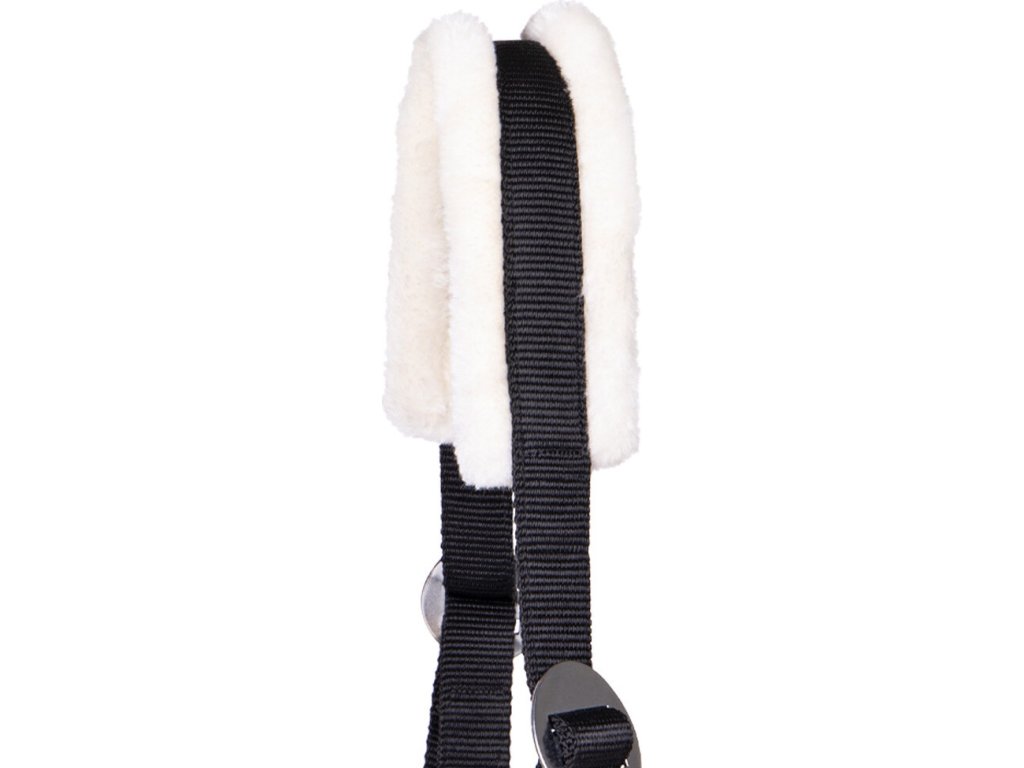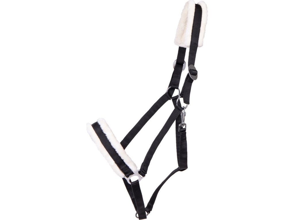 Wysokiej jakości kantar, który dzięki specjalnemu rozmiarowi nadaje się dla koni ras zimnokrwistych. Wyposażony w sztuczne futro jagnięce na nachrapniku i pasku potylicznym dla maksymalnego komfortu. Kantar jest regulowany po obu stronach i posiada stałą klamrę do zapinania. Pasuje idealnie do innych produktów Cali QHP i jest dostępny w kilku opcjach kolorystycznych.