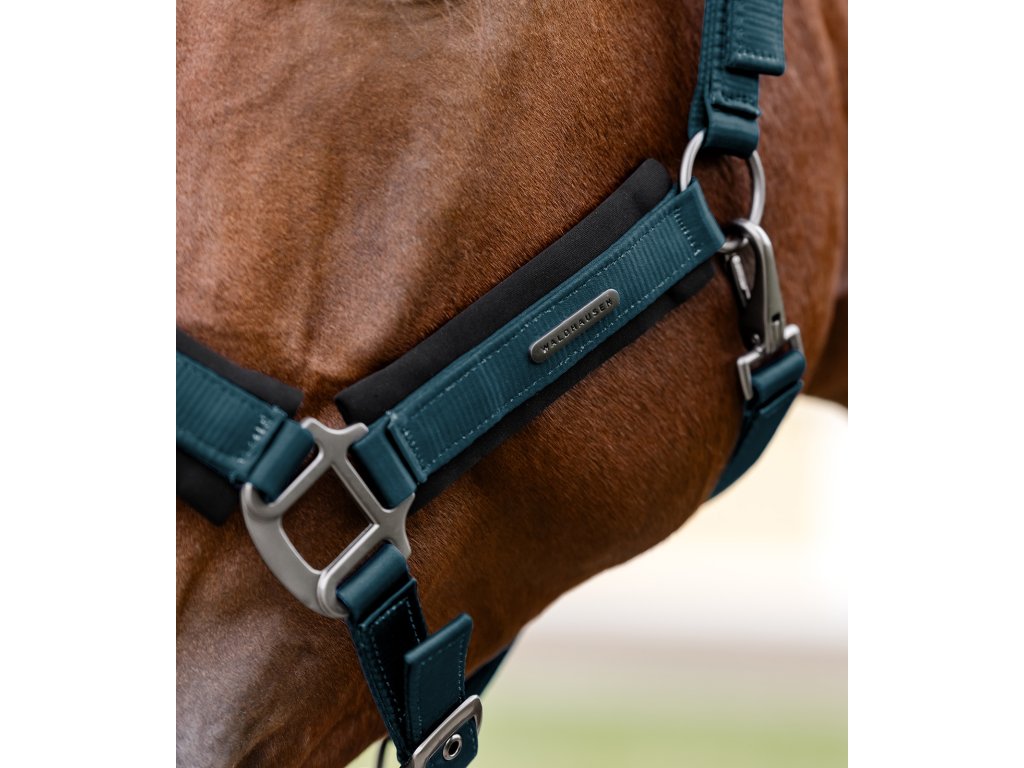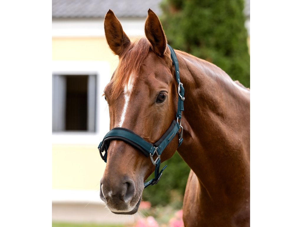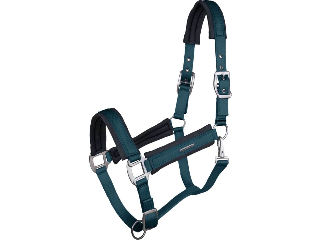 Wysokiej jakości kantar z delikatnym satynowym wykończeniem. Obszar paska potylicznego, nachrapnika i pasków policzkowych wyściełane są miękkim materiałem, który zapewnia maksymalny komfort noszenia. Kantar umożliwia łatwą regulację na nachrapniku i po obu stronach paska potylicznego. Uzupełnieniem są ciemne okucia, karabińczyk i eleganckie antracytowe logo Waldhausen.