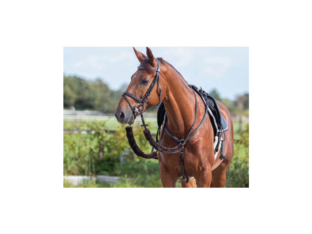 Skóra jagnięca na wodze, która zapobiega otarciom u konia. Łatwa do przymocowania za pomocą mocnego rzepu. Osłonka z owczej skóry sprzedawana jest w parach i jest również dostępna w kolorze brązowym i kremowym.