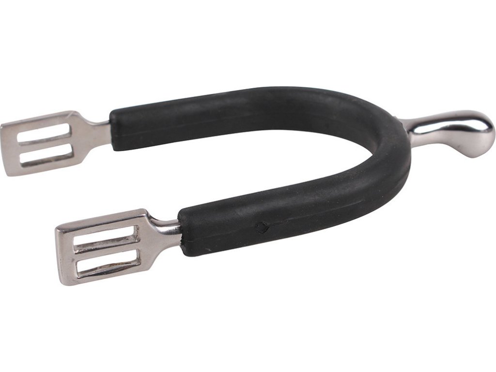 Damskie ostrogi wykonane ze stali nierdzewnej z okrągłymi końcówkami. Dzięki ochronnej gumie nie ścierają butów. Dostarczane w parach, w zestawie nylonowe paski.