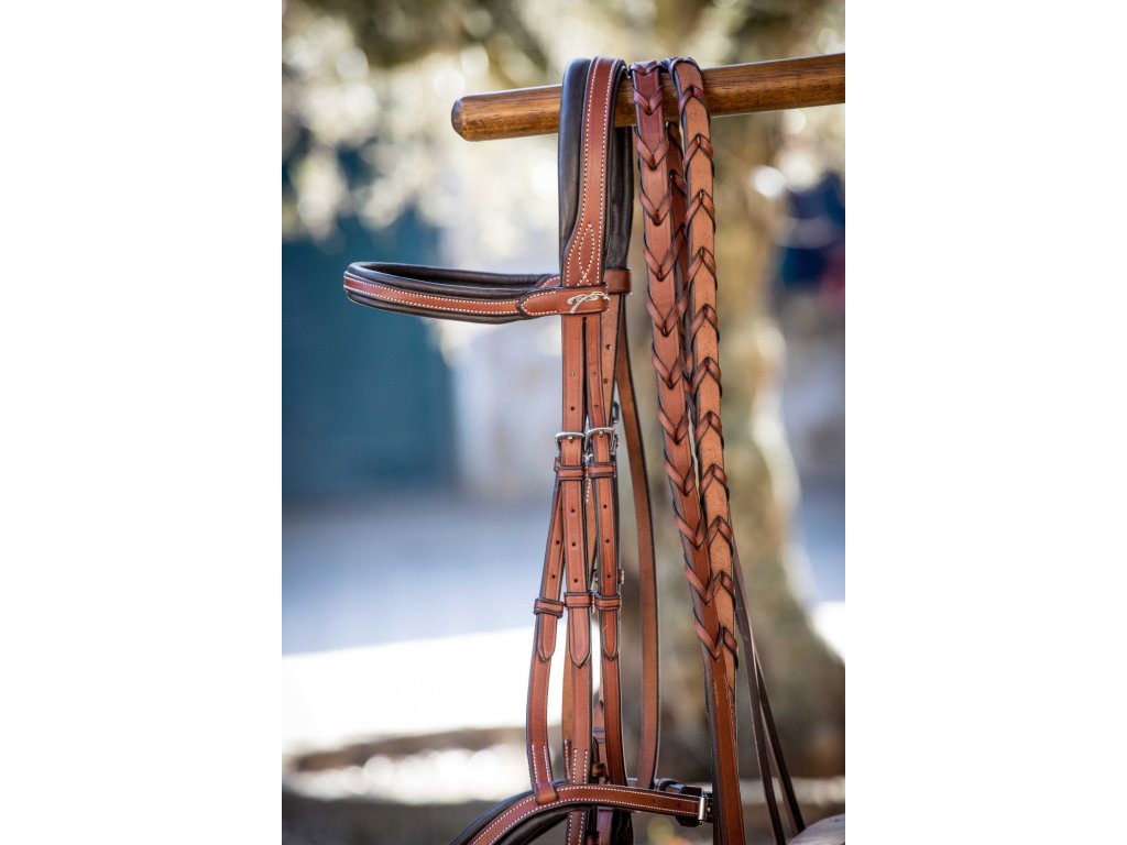 Plecione wodze US wykonane z wysokiej jakości skóry bydlęcej to stylowy powrót do tradycyjnego angielskiego wyglądu. Skóra jest subtelnie ozdobiona wytłoczonym logo Penelope na sprzączkach.