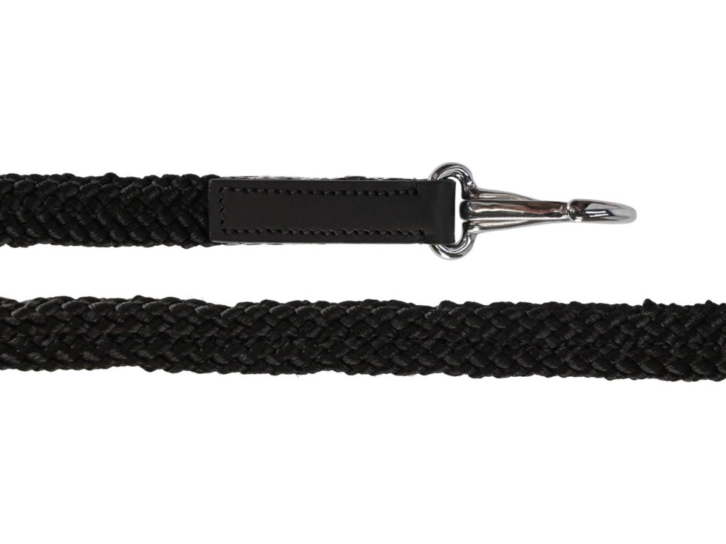 Miękkie wodze z liny ze skórzanym wzmocnieniem na końcach i praktycznymi karabińczykami. Nadaje się do ogłowi bezwędzidłowych lub kantarów linowych. Całkowita długość 3 m.