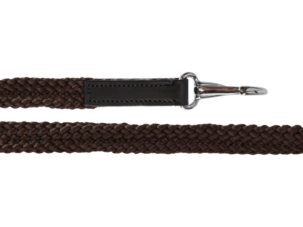 Miękkie wodze z liny ze skórzanym wzmocnieniem na końcach i praktycznymi karabińczykami. Nadaje się do ogłowi bezwędzidłowych lub kantarów linowych. Całkowita długość 3 m.