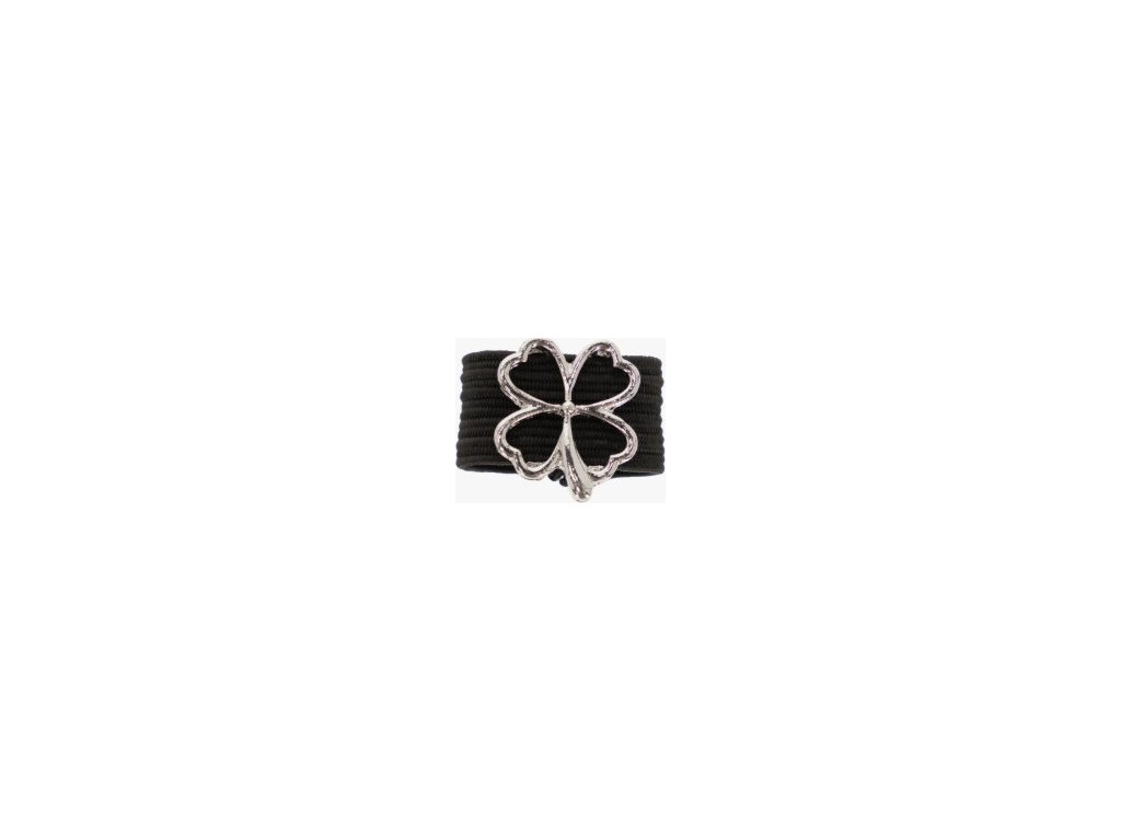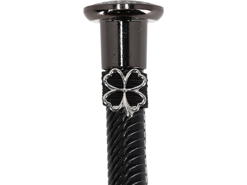 Subtelna ozdoba bata w kształcie czterolistnej koniczyny. Ozdoba jest przyczepiona do elastyczne gumki, którą można łatwo założyć na bat.