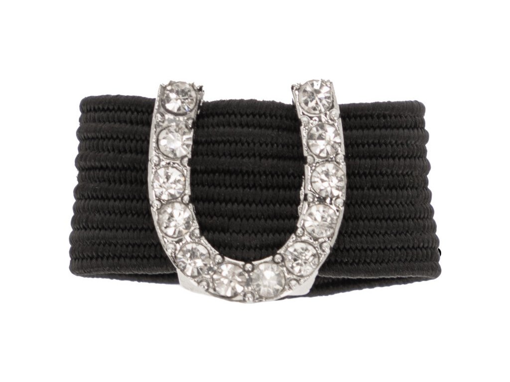 Subtelna ozdoba do bata w kształcie podkowy. Ozdoba jest przyczepiona do elastyczne gumki, którą można łatwo założyć na bat.