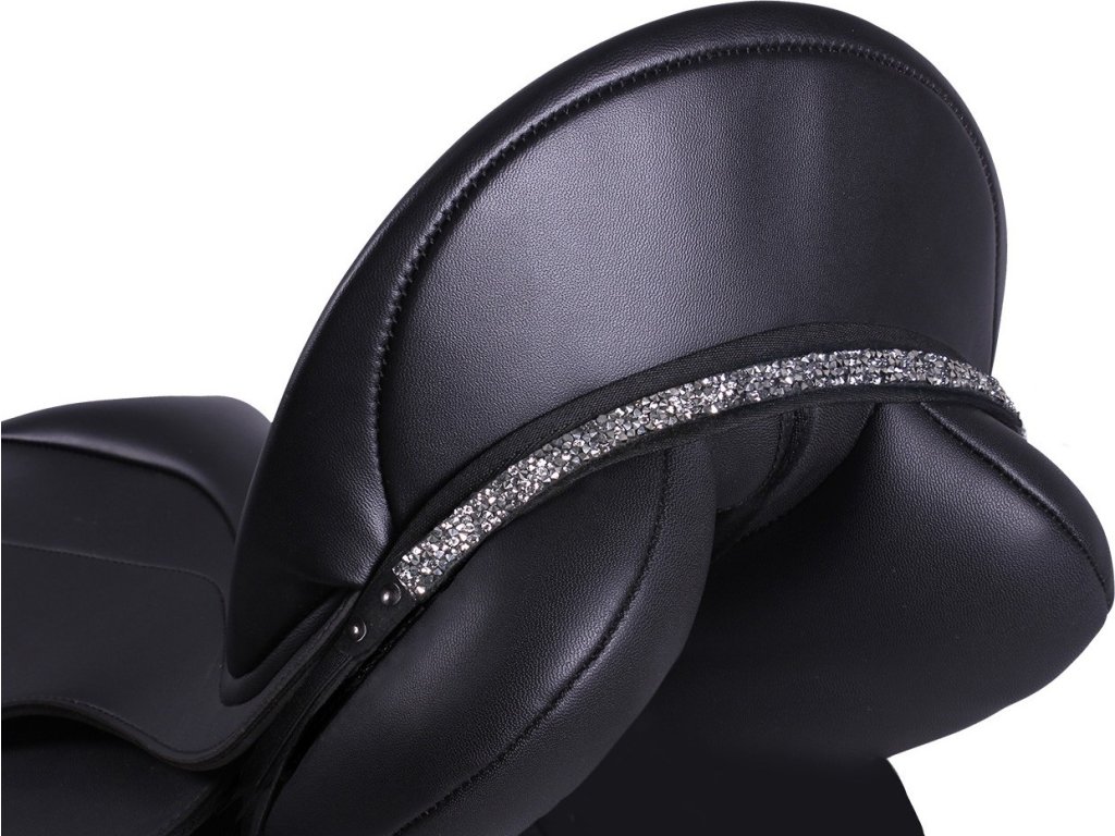 Ozdoba na siodło pokryta rozproszonymi szarymi cyrkoniami. Można ją przymocować, przesuwając elastyczne pętle wokół spodniej części tybinek siodła.