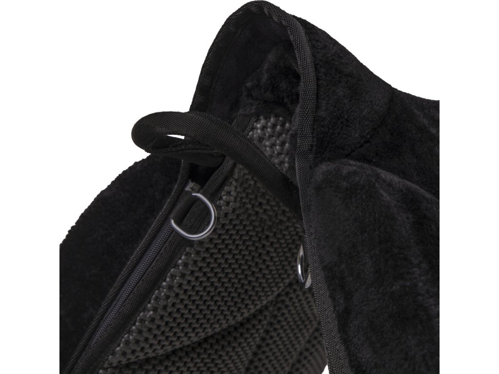 Bardzo wysokiej jakości podkładka jeździecka z miękkim sztucznym futrem. Sztuczna skóra jagnięca jest łatwo odpinana za pomocą zamka błyskawicznego. Anatomiczny kształt podkładki zapewnia maksymalny komfort i zapobiega otarciom w okolicy kłębu. Posiada antypoślizgową warstwę spodnią, która zapewnia, że podkładka pozostaje na swoim miejscu podczas jazdy. Zapewnia jeźdźcowi maksymalny komfort, stabilność oraz wsparcie kolan, które wspomagają pozycję jeźdźca. Posiada pętlę do trzymania, D-ringi z tyłu do mocowania toreb oraz D-ringi z przodu do mocowania napierśnika. Szczegółowy film o podkładce jeździeckiej można znaleźć TUTAJ.