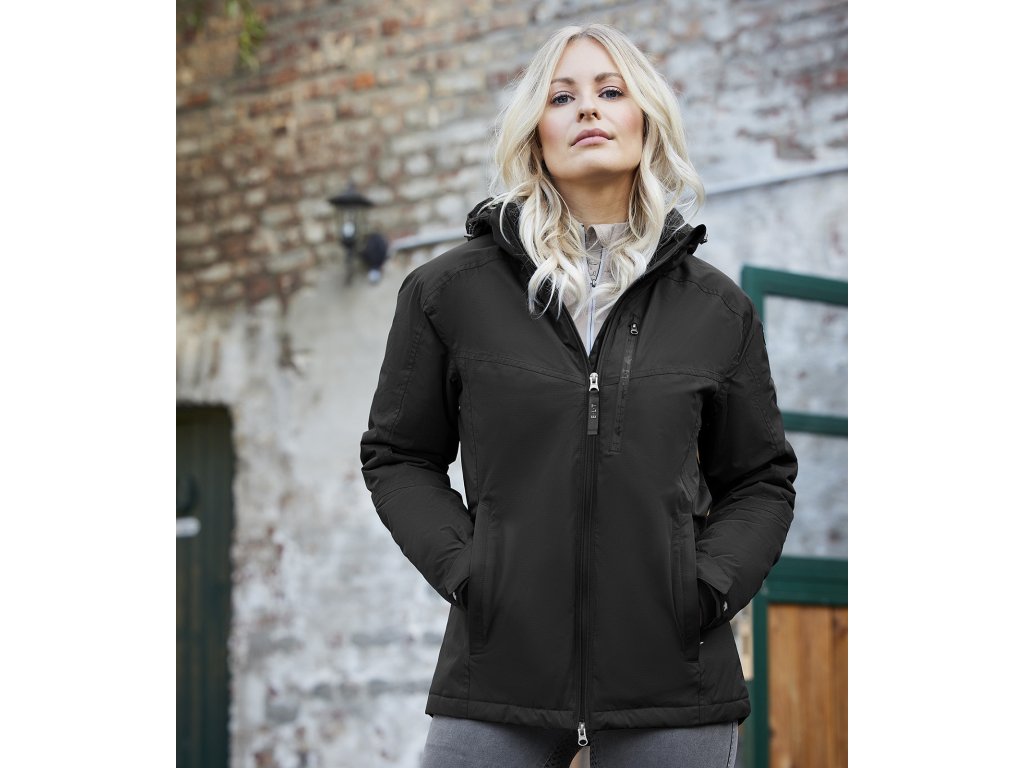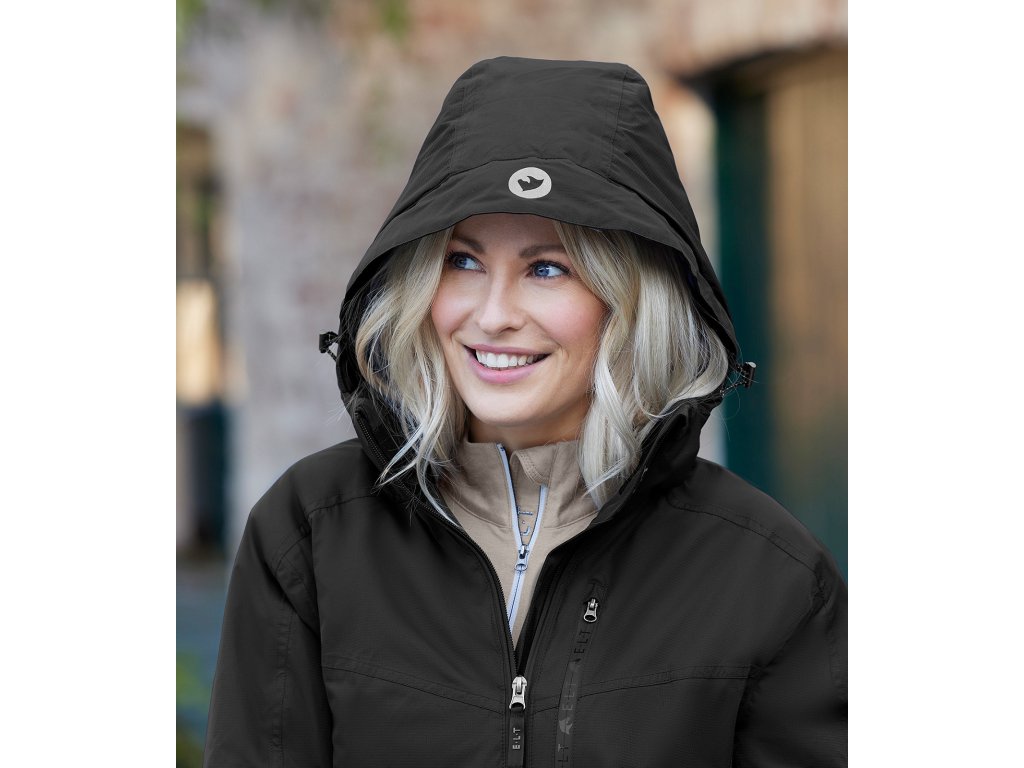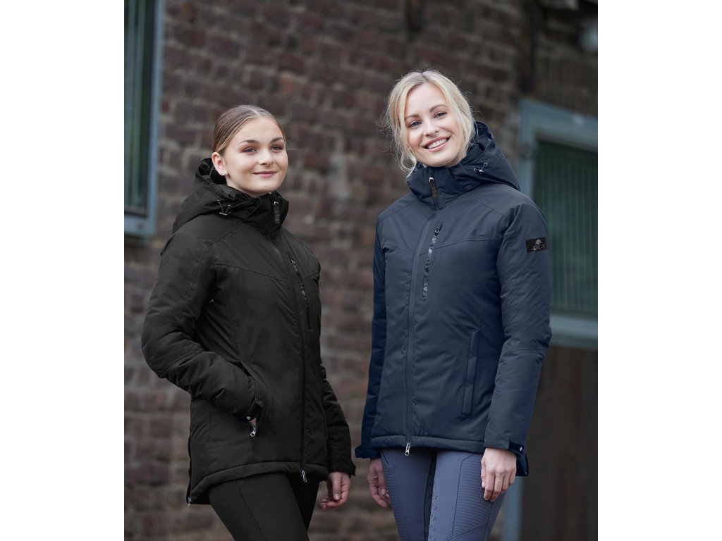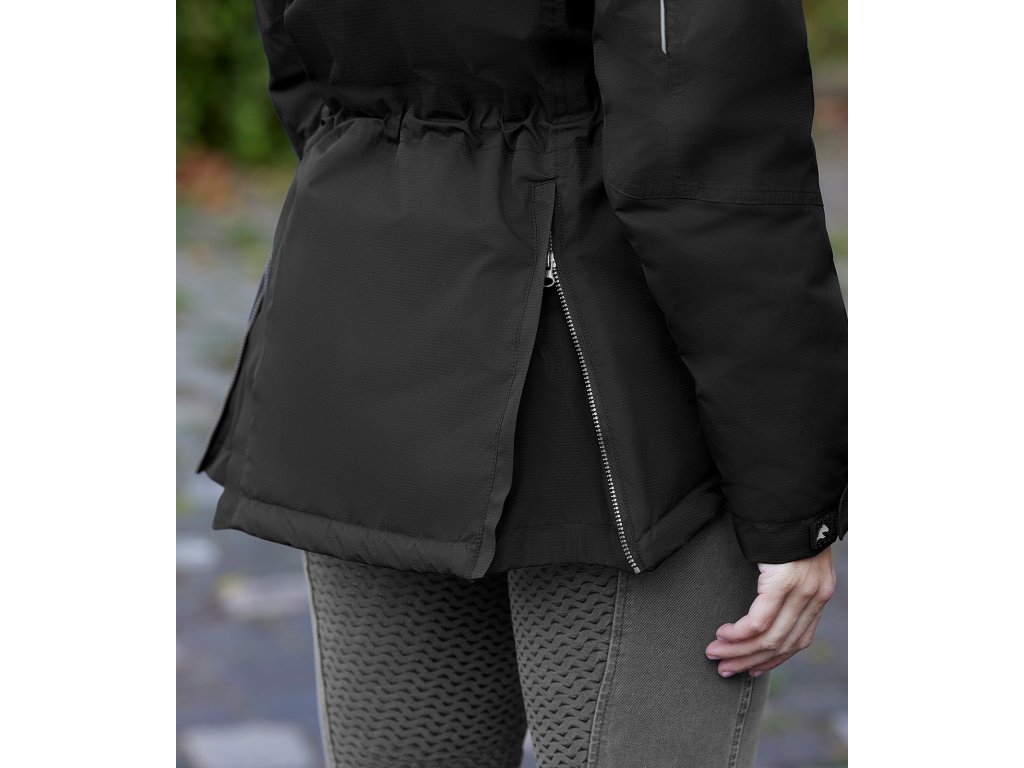 Modna parka jeździecka odpowiednia na chłodne zimowe miesiące. Wykonana z oddychającego, wiatroodpornego i wodoodpornego materiału. Wyposażona w miękki polar po wewnętrznej stronie kurtki. Uszyta w dopasowanym kroju ze ściągaczem w pasie dla regulacji szerokości. Posiada również dwukierunkowy zamek błyskawiczny, klejone szwy i odpinany kaptur dla maksymalnego komfortu jazdy. Posiada dwie przednie kieszenie i jedną kieszeń na piersi z wodoodpornym zamkiem błyskawicznym, odblaskowe paski na rękawach, odblaskowe logo na kapturze i regulowane mankiety przeciwsztormowe na rękawach.