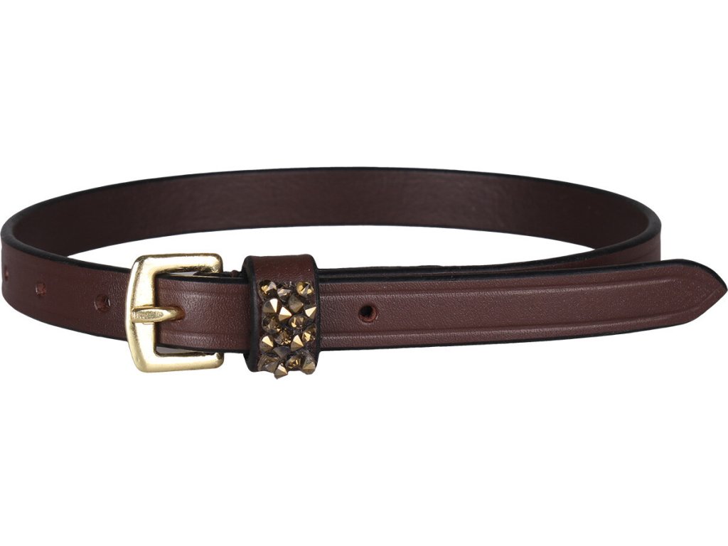 Paski do ostróg wykonane z wysokiej jakości skóry. Ozdobione błyszczącymi cyrkoniami, które rozjaśniają ogólny wygląd. Zapięcie ze srebrną klamrą ze stali nierdzewnej. Całkowita długość 46 cm. Dostarczane w parach.