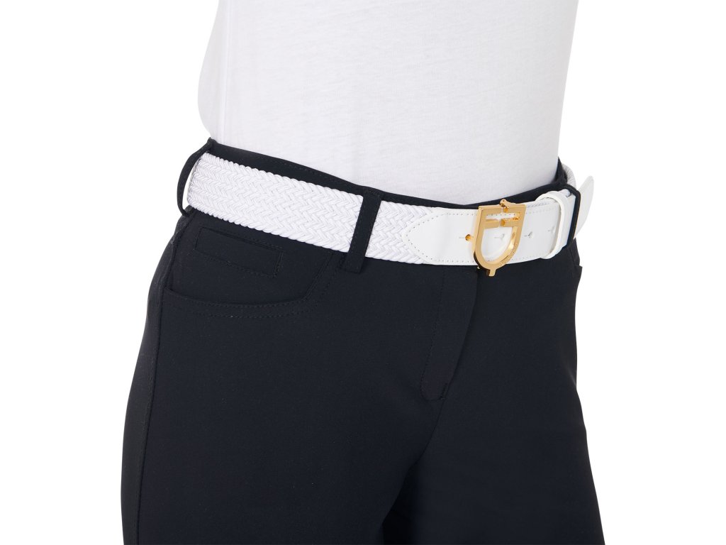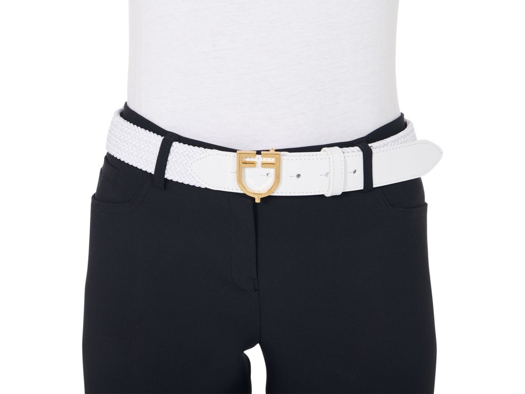 Wysokiej jakości pasek wykonany z elastycznej tkaniny i miękkiej skóry, idealny na treningi i zawody. Idealnie dopasowany i gwarantujący maksymalny komfort. Zapinany na pozłacaną klamrę ze stali nierdzewnej w kształcie logo Equestro. Dostępny w wielu wariantach kolorystycznych i rozmiarach od 80 cm – 120 cm.