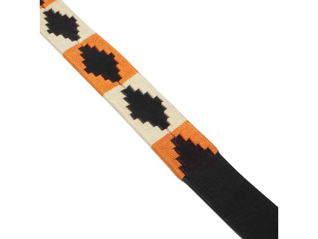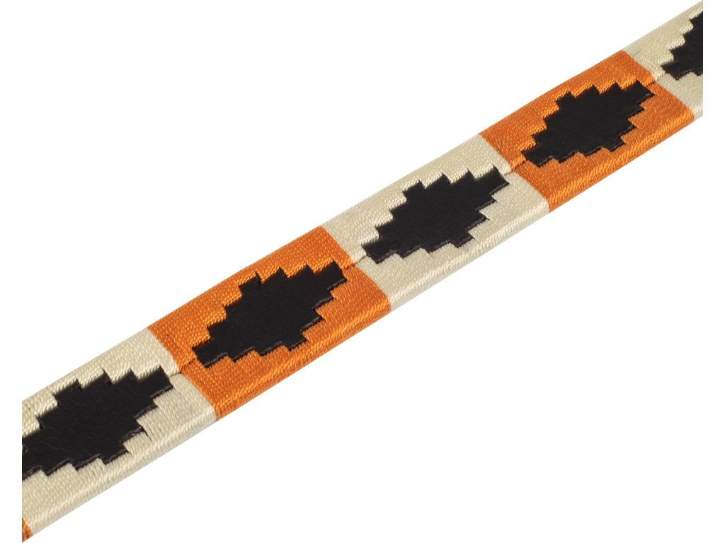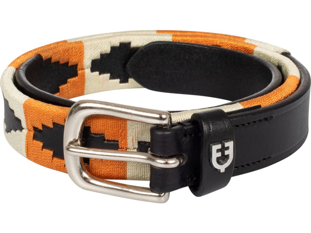 Wysokiej jakości pasek wykonany z miękkiej skóry. Pasek jest bardzo wygodny, mocny i trwały. Wyposażony w okucia ze stali nierdzewnej. Ozdobiony kontrastującą dekoracją z motywem navajo i logo Equestro. Szerokość paska wynosi 25 mm. Produkowany w rozmiarach od 60 cm do 105 cm.