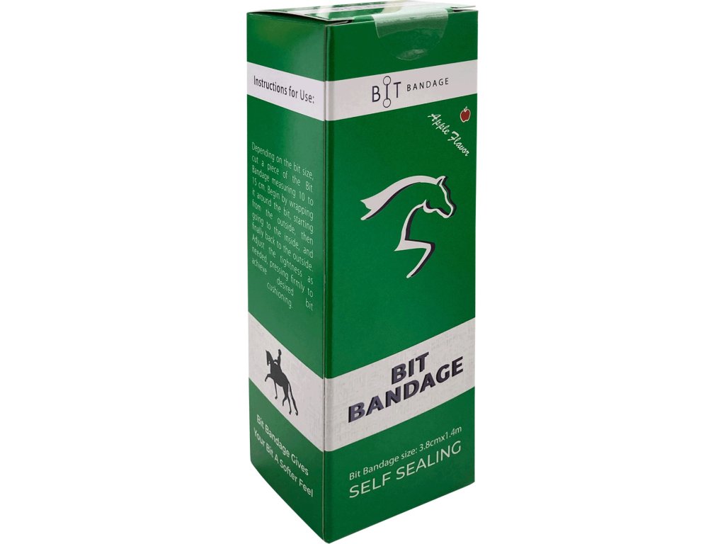 Samoprzylepny, elastyczny bandaż do wędzidła wykonany z miękkiej pianki. Służy jako ochrona przed otarciami. Owijaj tak ciasno, jak to możliwe, od jednego kółka wędzidła do drugiego. Dla dodatkowej miękkości można użyć dwóch warstw. Może być stosowany do każdego wędzidła. Jedno opakowanie zawiera 3,8 cm x 140 cm. Do jednorazowego użytku potrzeba od 10 do 15 cm, w zależności od rozmiaru wędzidła.